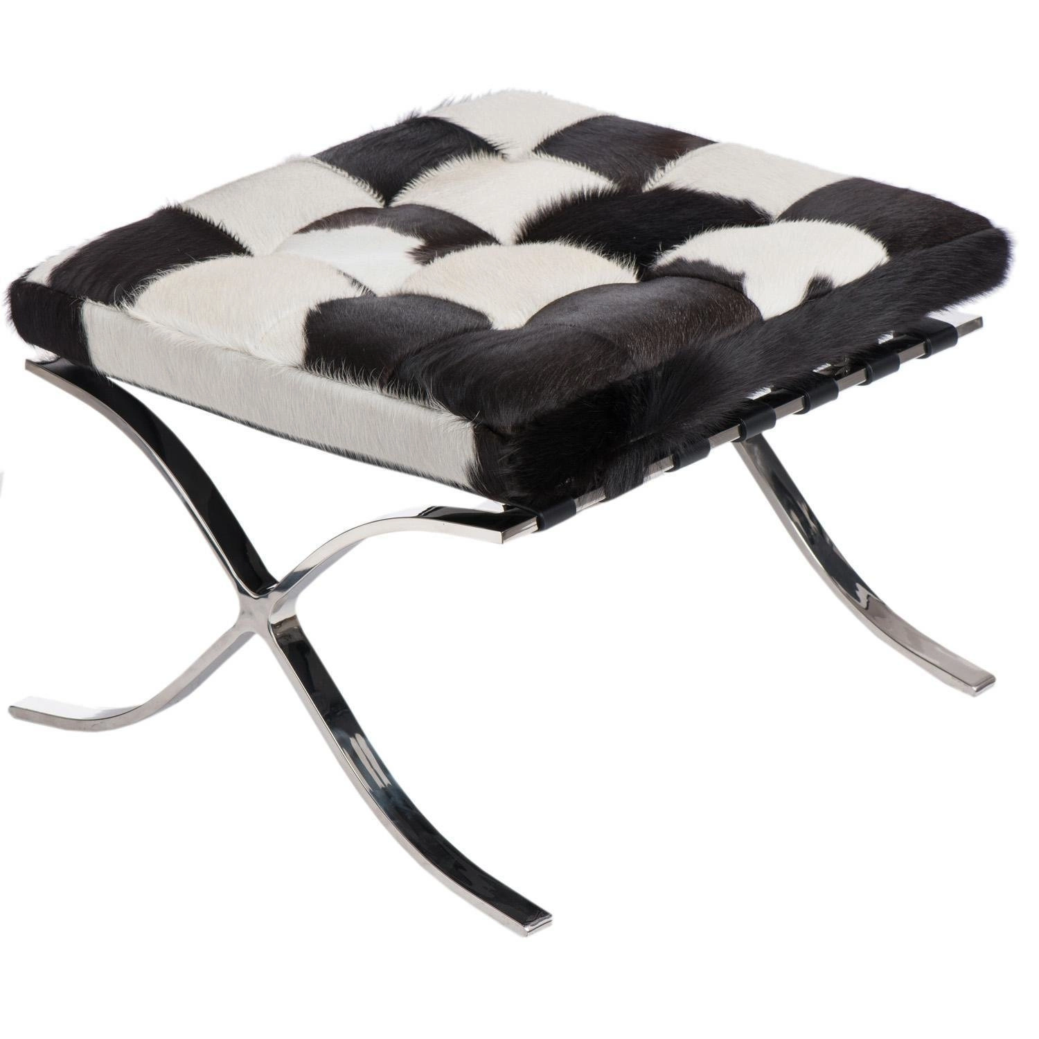 Charakterystycznie powyginana w kształt litery "X" chromowana podstawa oraz pikowana w kwadraty skóra naturalna to najbardziej charakterystyczne cechy tego podnóżka. Uzupełnieniem tego produktu jest fotel Barcelona i Barcelona stolik.
