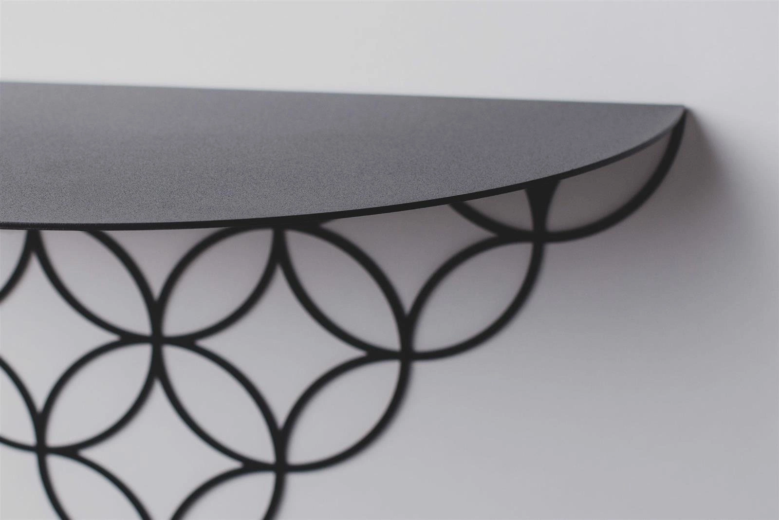 Całość, nieprzemijalność, nieskończoność. Wieszaki i półki z serii Holo to hołd dla koła – najprostszej i zarazem najbardziej złożonej figury geometrycznej. Produkty z tej serii są ponadczasową dekoracja każdej przestrzeni. Wycinany laserowo, stalowy, malowany proszkowo. Waga: 1kg