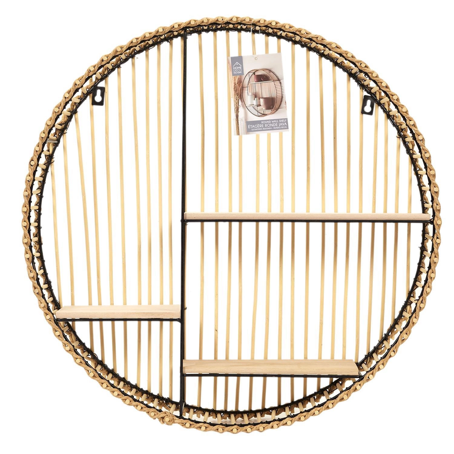 Okrągła półka Bali to połączenie metalowego szkieletu, drewnianych półek oraz rattanu, który został ozdobnie przepleciony. Produkt wyposażony został w trzy półki na których można ustawić np. świeczki, zdjęcia czy wazony.