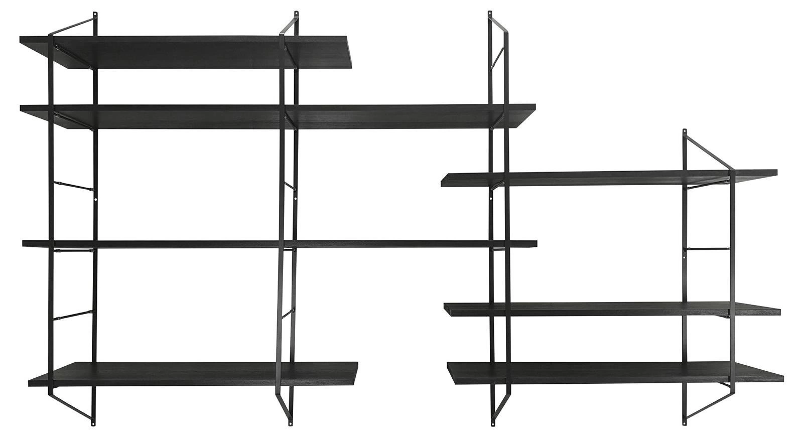 Półki regału Belfast ułożone są w asymetryczny sposób. Różnią się długością - część z nich jest krótka, reszta nieco dłuższa. Dzięki takiej nieoczywistej formie regał Belfast pełni funkcję dekoracyjną.