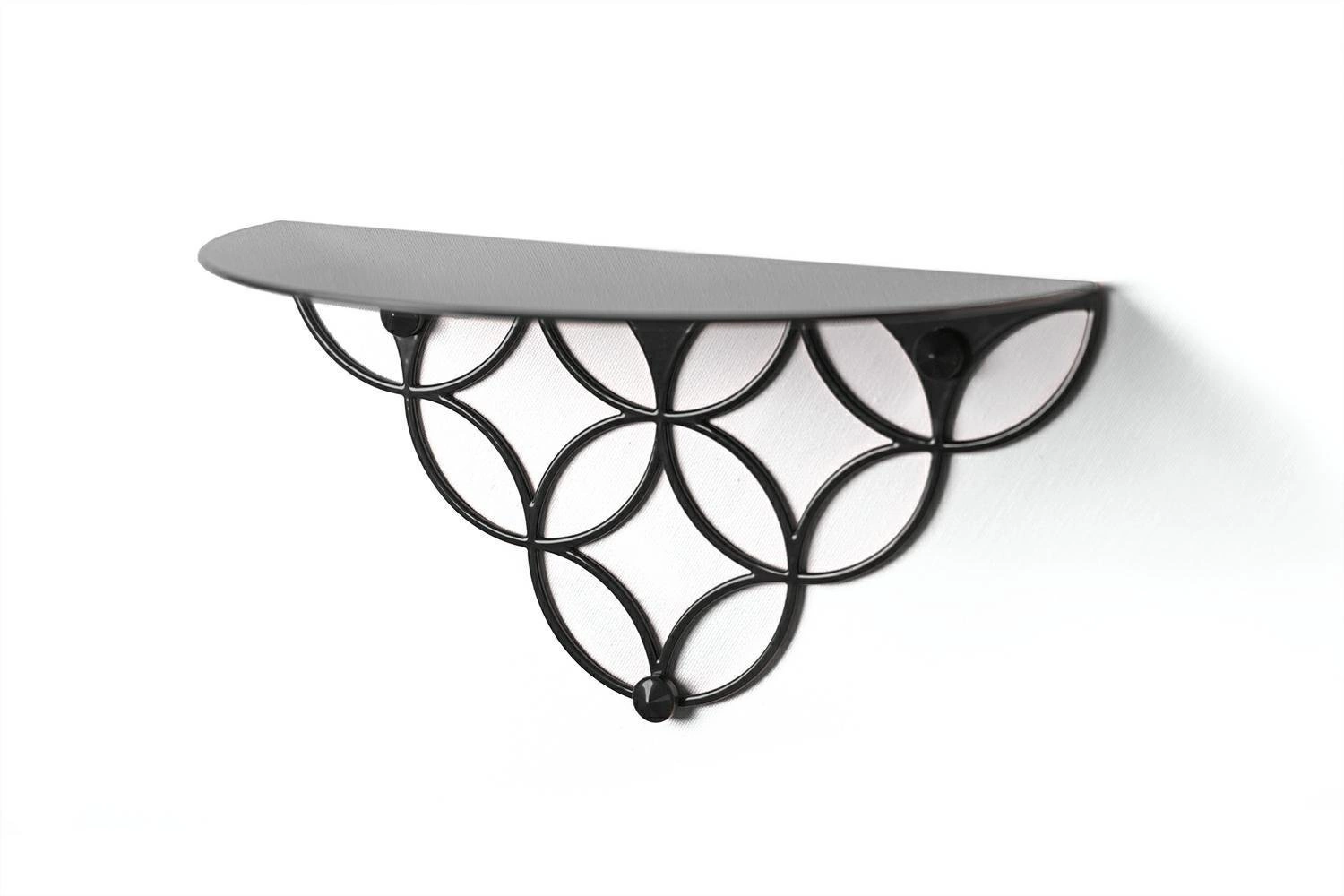 Całość, nieprzemijalność, nieskończoność. Wieszaki i półki z serii Holo to hołd dla koła – najprostszej i zarazem najbardziej złożonej figury geometrycznej. Produkty z tej serii są ponadczasową dekoracja każdej przestrzeni. Wycinany laserowo, stalowy, malowany proszkowo. Waga: 0,6kg