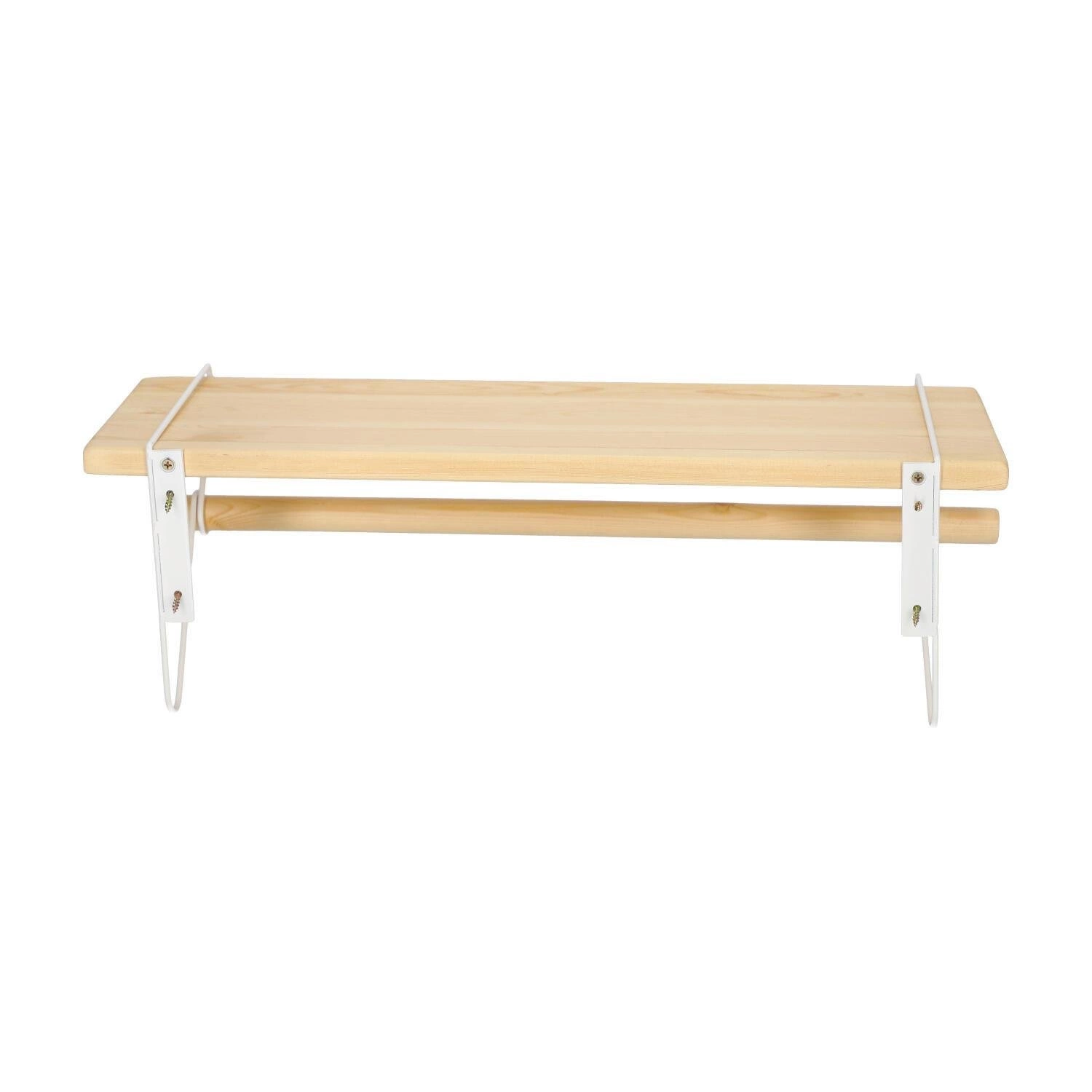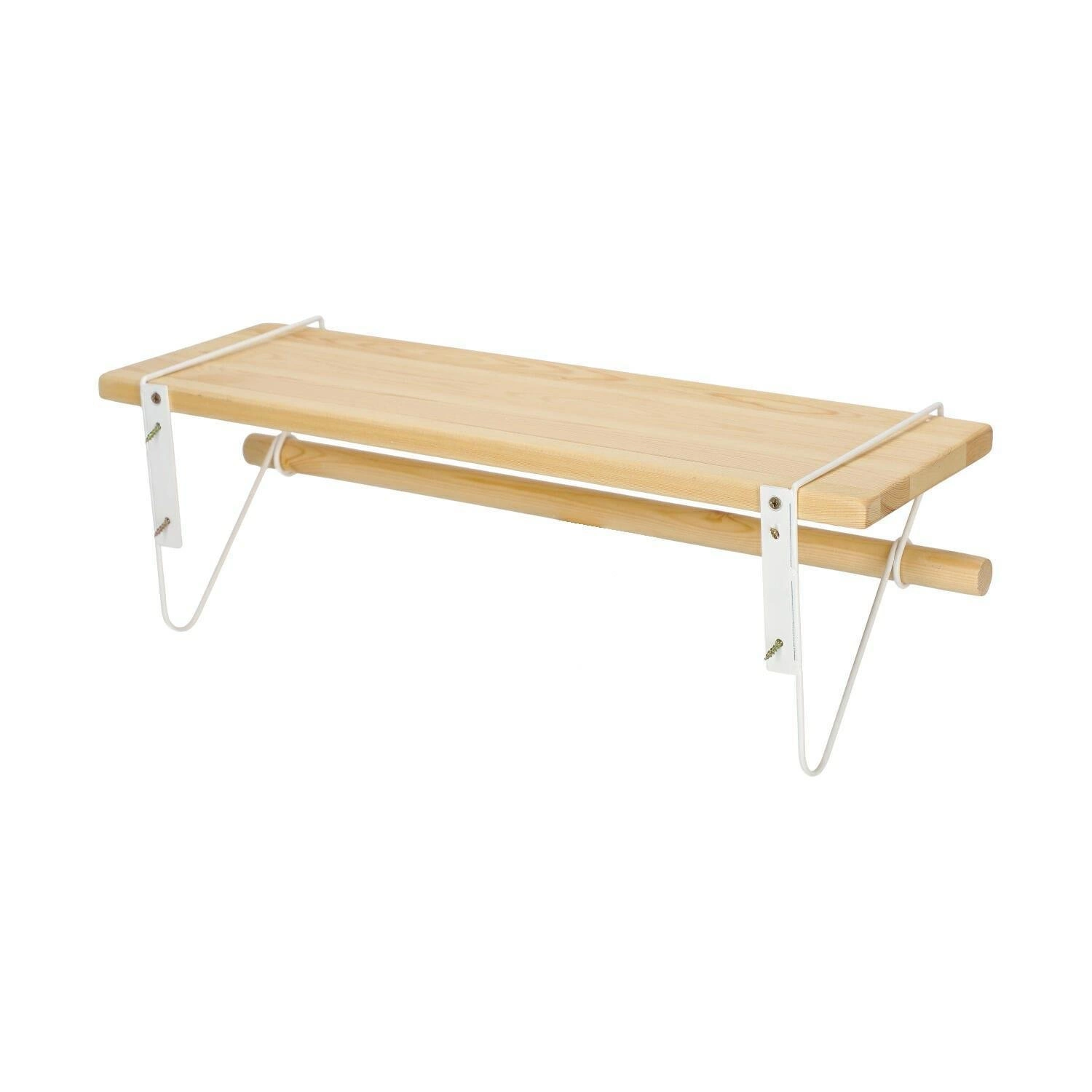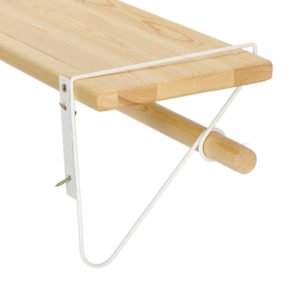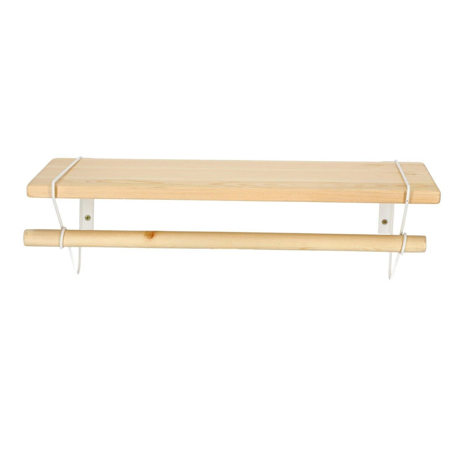 Drewniana półka o białych metalowych wspornikach to idealny wieszak do jasnego wnętrza w stylu skandynawskim. Półka Bish została wykonana z naturalnego drewna połączonego z białymi elementami. Półka posiada dodatkowy drewniany drążek, na którym możemy wieszać wieszaki z kurtkami. Półka sprawdzi się w niewielkim przedpokoju. Wymiary opakowania: 6x17x63 cm