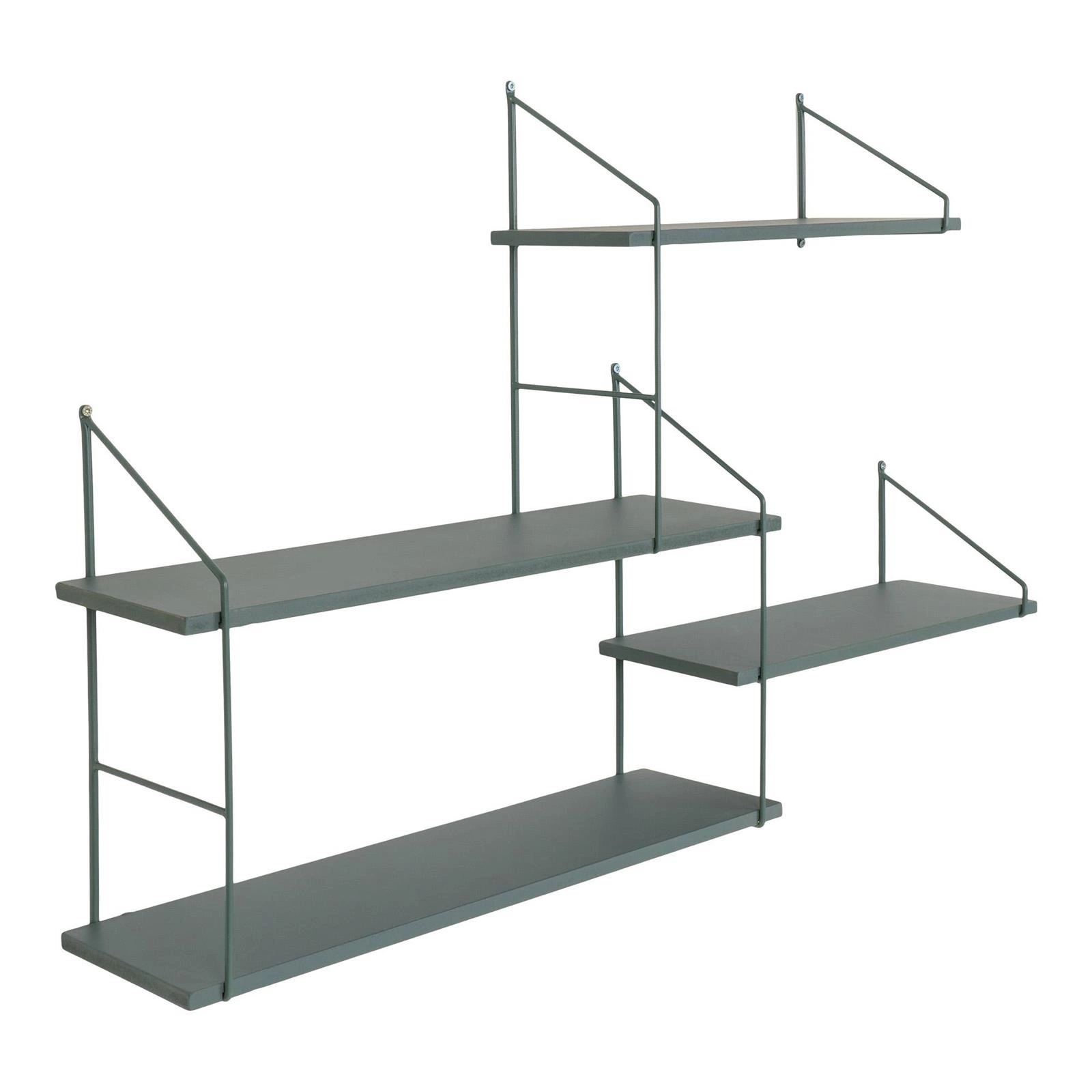 Półka ścienna HARLEM to piękny i niepowtarzalny element, który doda funkcjonalności i stylu do każdego pomieszczenia. Ta ciekawa półka składa się z czterech półek z drewna paulownia na metalowej podstawie. Pomalowana jest na ciekawy zielony kolor i może utrzymać do 3 kg na półkę.