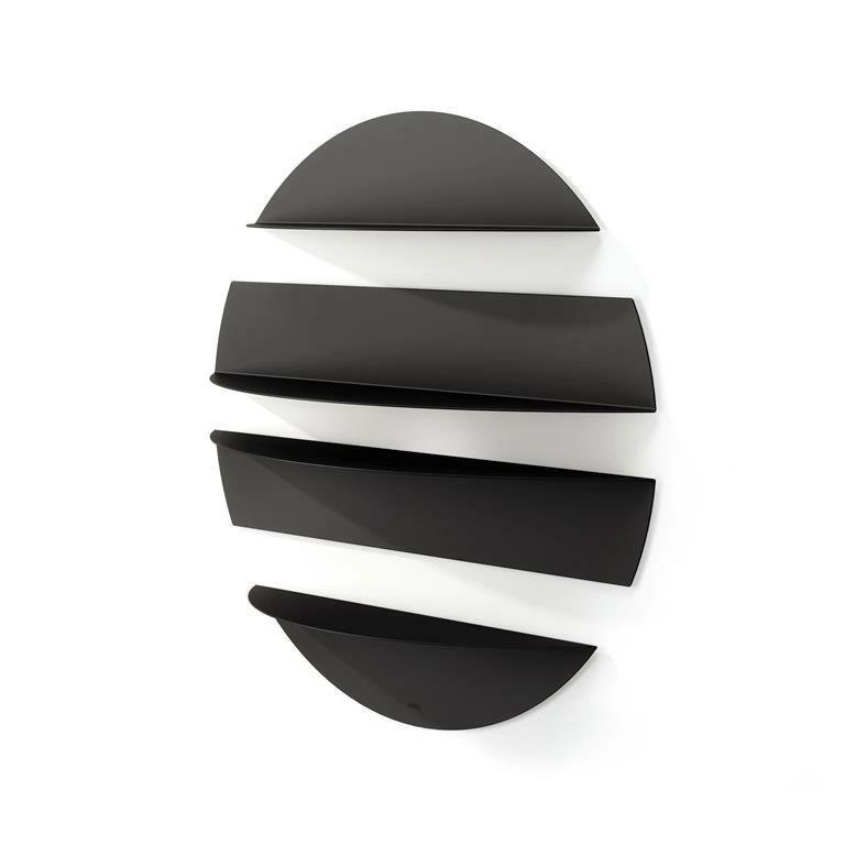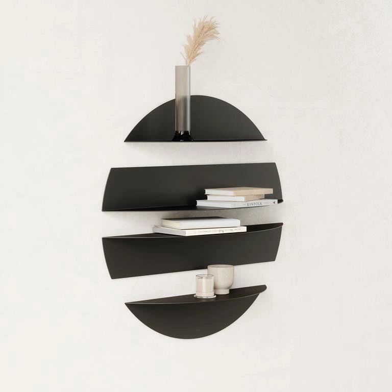 Półki Solis to komplet tworzący na ścianie geometryczny kształt koła. Jest to estetyczny mebel, który przyciąga wzrok swoją nietypową budową. Idealnie sprawdzi się w nowoczesnej sypialni lub salonie, ale nie tylko. Wykonana w całości w kolorystyce czarnej jest kwintesencją elegancji. Jest to jeden z wielu powodów, który sprawia, że półka Solis to warty uwagi mebel.