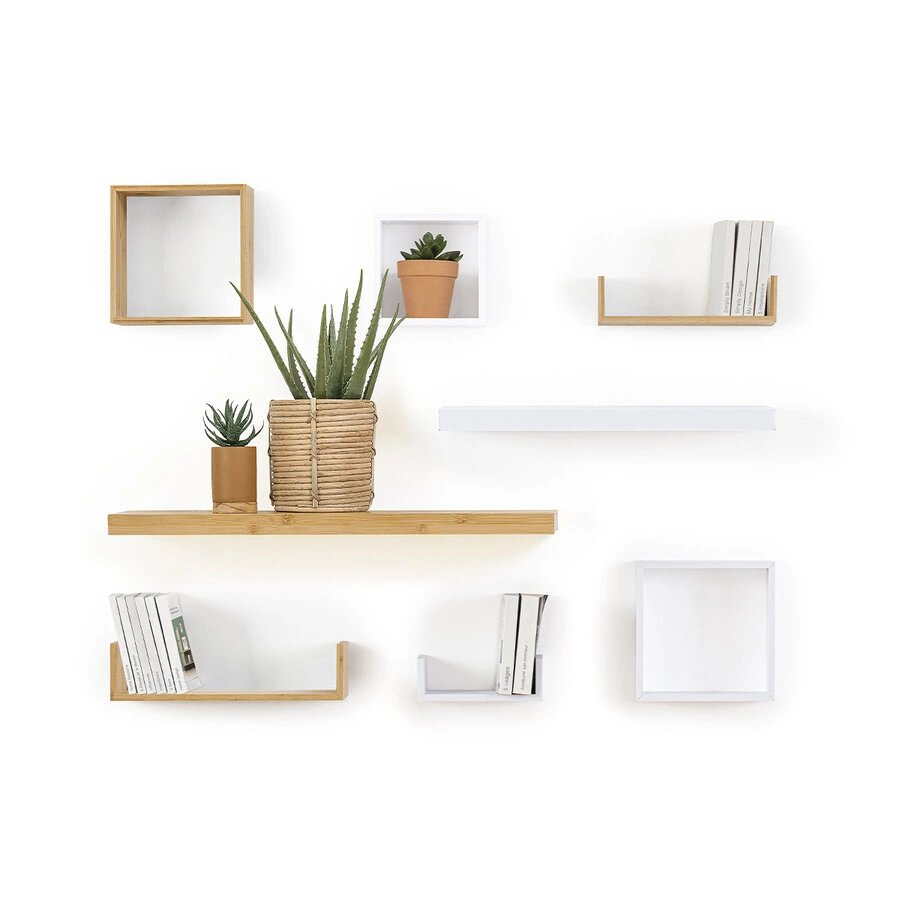Zestaw 3 półek Cube Półki firmy 5five simply smart to idealny mebel do salonu w stylu skandynawskim. Wykonane z drewna bambusowego, tworzą trwały i stylowy element, który doda do Twojego nowoczesnego wystroju charakteru. Zestaw Cube został zaprojektowany z myślą o osobach kreatywnych i odważnych. To nie są zwykłe półki... to wyrazisty mebel. Piękna konstrukcja z trwałego drewna bambusowego sprawia, że wszystko idealnie się komponuje. Maksymalne obciążenie na półkę wynosi 3 kg. Dla tych, którzy nie lubią wtapiać się w otoczenie, nasz Cube jest idealny. Jest odważny i swobodny - to coś, czego nie można znaleźć wszędzie. Nie czekaj dłużej i już dziś ciesz się Swoimi półkami wykonanymi z bambusa! O tym warto pamiętać! Skandynawski i stylowy wygląd zestawu półek Wystarczająco dużo miejsca do przechowywania książek, akcesoriów i dekoracji Wytrzymała konstrukcja Niska waga - łatwy d zmiany aranżacji