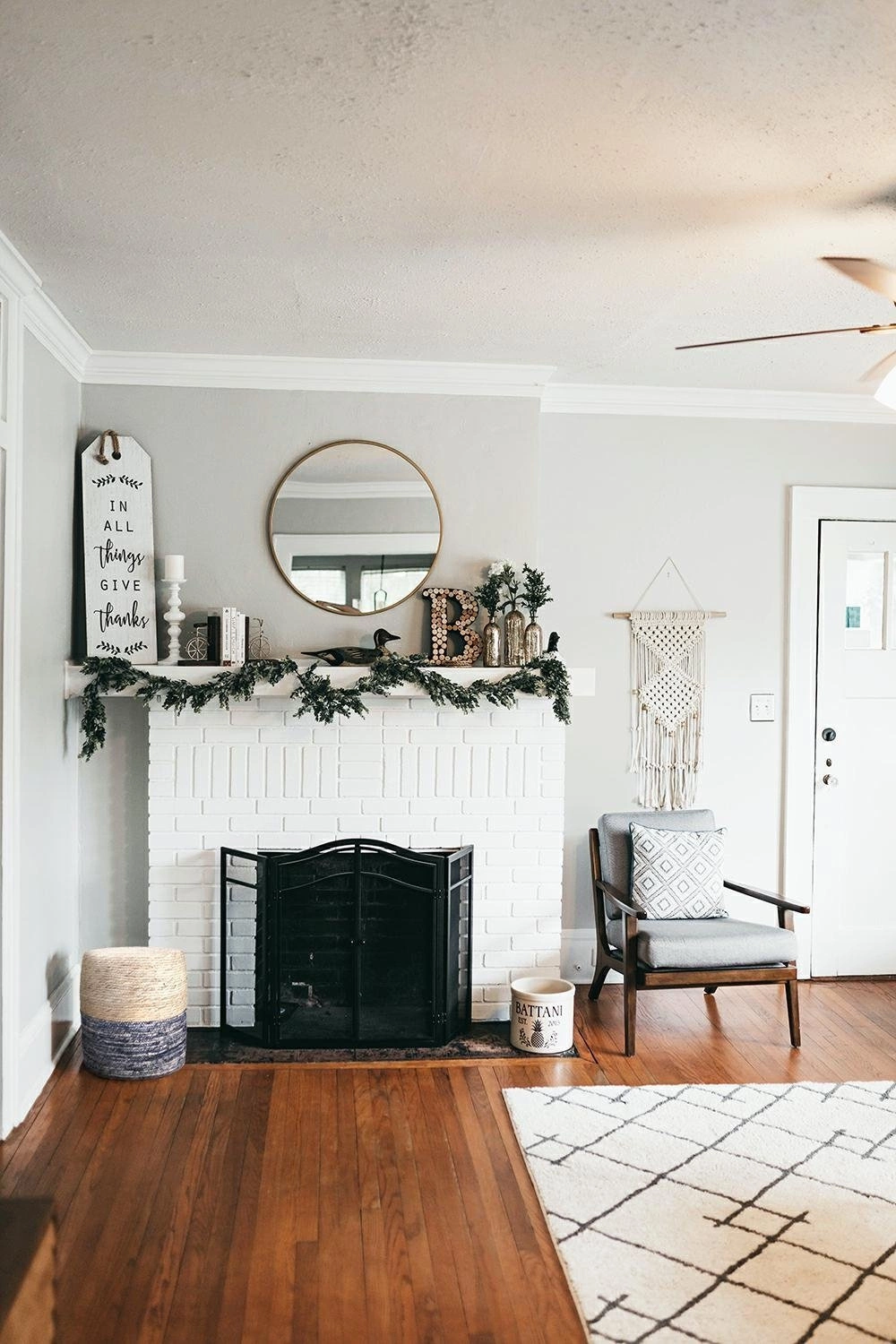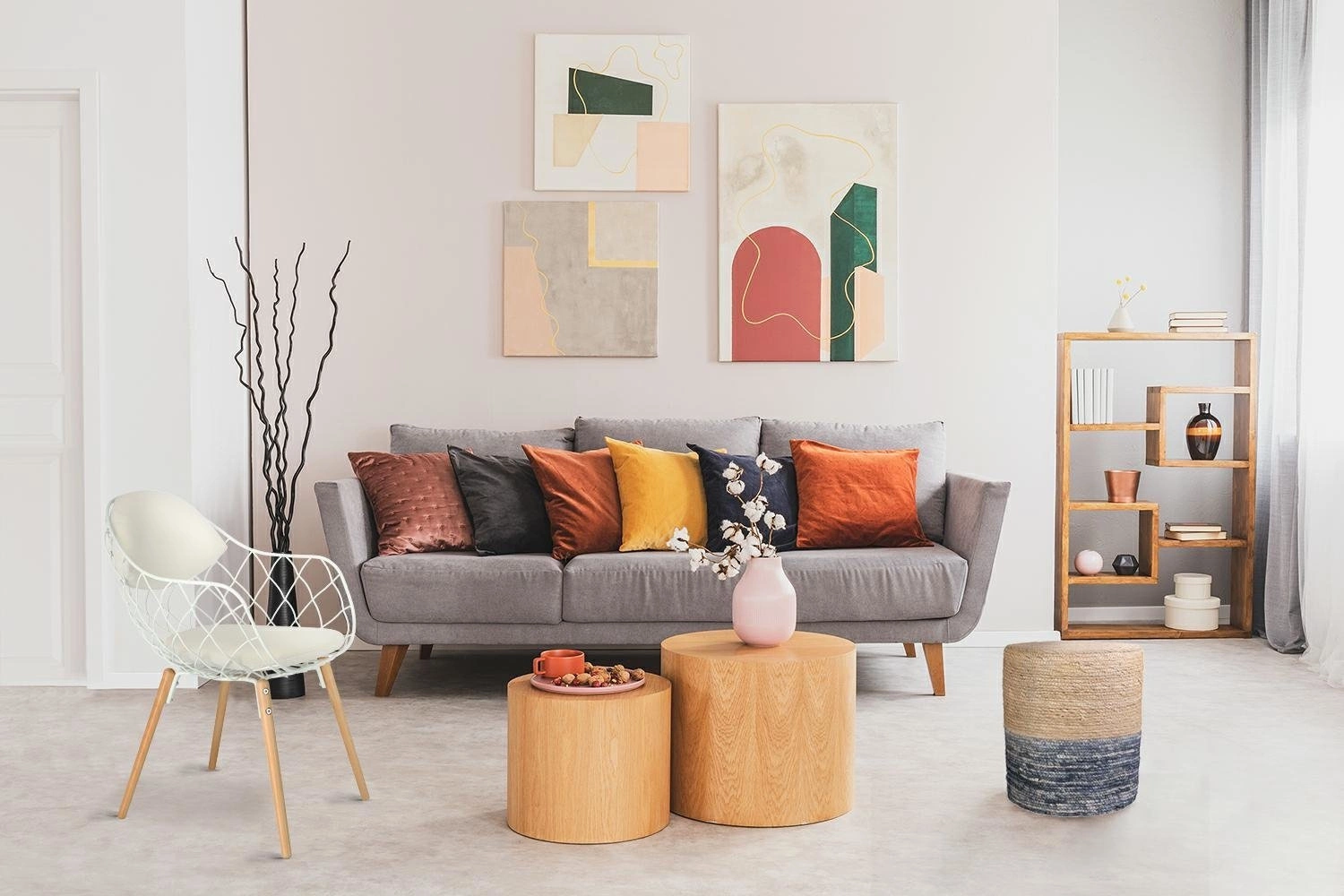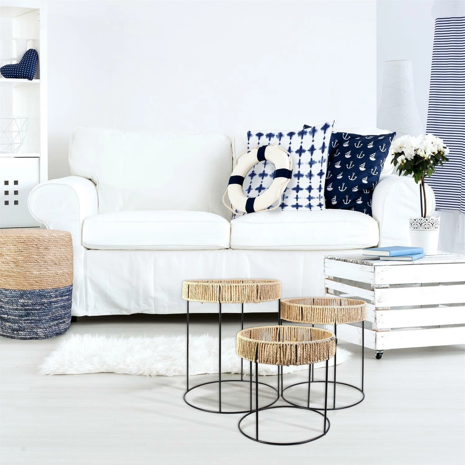 Pleciony puf do siedzenia w salonie