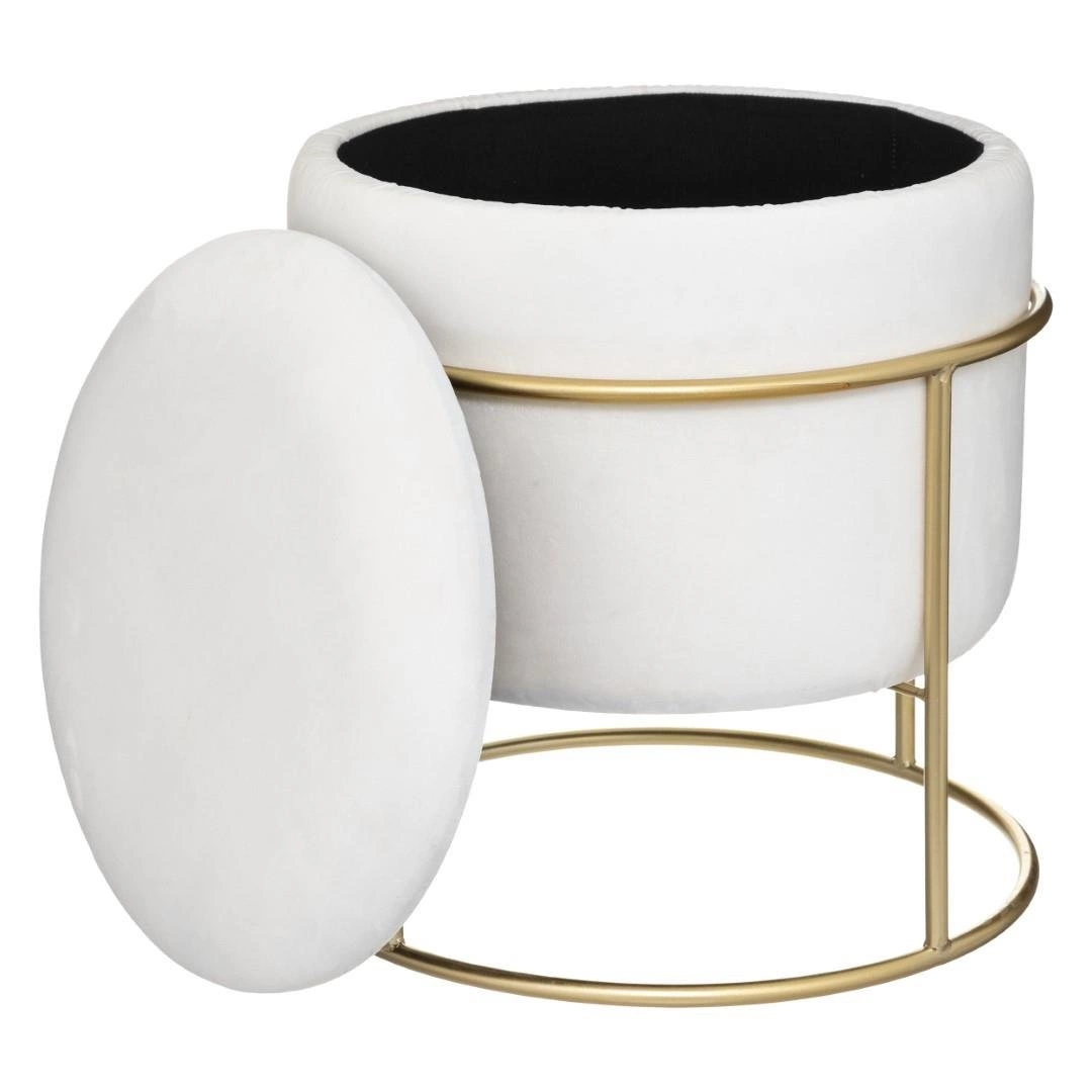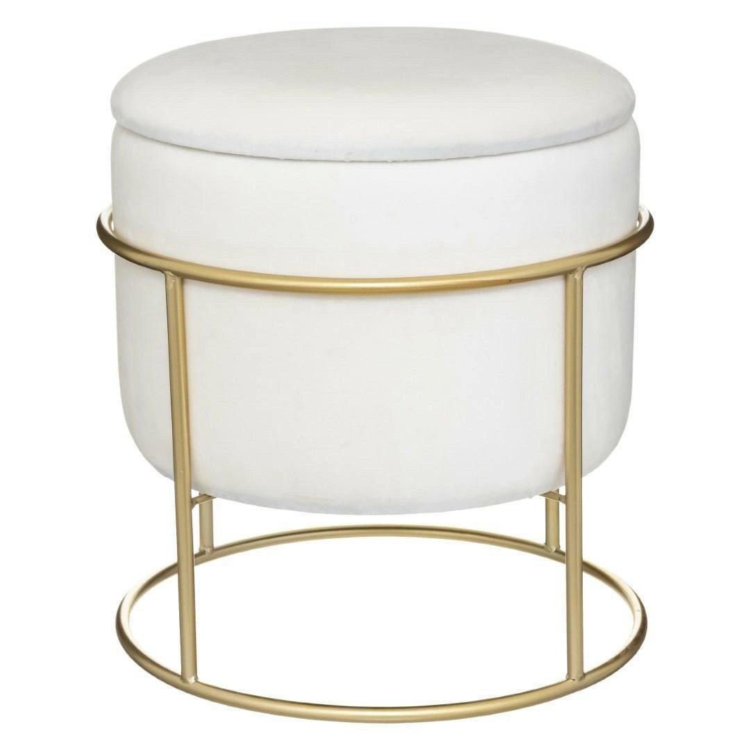 Pufa Eliane o walcowatym kształcie siedziska oraz złotej podstawie wpisuje się w 100% w styl modern glamour. Okrągłe siedzisko umieszczone zostało na złotej metalowej podstawie. Nietypowa pufa, której próżno szukać w sztampowych wnętrzach. Pufa Eliane sama w sobie jest niezwykle ozdobna. Pufa może służyć jako designerski podnóżek lub dodatkowe siedzisko w niewielkim mieszkaniu. Pufa Eliane to również ciekawe siedzisko do toaletki. Wnętrze pufy to wytrzymała płyta MDF obita miękką gąbką tapicerską. Tkanina to delikatny w dotyku welur. Wymiary kartonu: 43x43x83cm