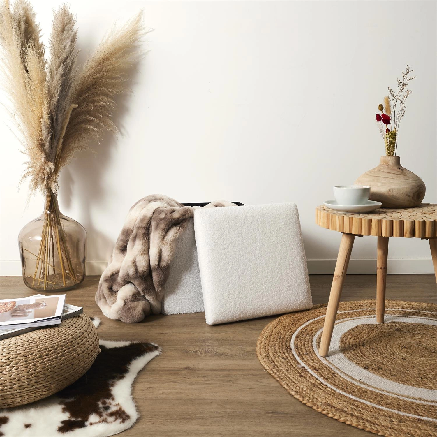 Intesi Vels Boucle to pufa w kolorze białym, który pasuje do każdego wnętrza. Dzięki uniwersalnej barwie, mebel ten idealnie wpasuje się zarówno do nowoczesnych, jak i klasycznych pomieszczeń. Biała pufa to także świetny wybór do pokoju młodzieżowego, sypialni czy salonu.