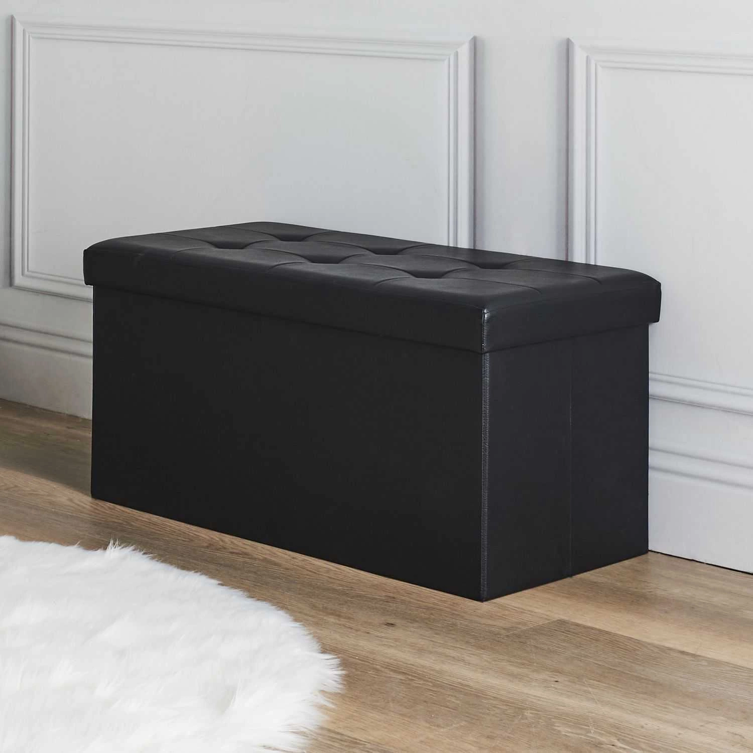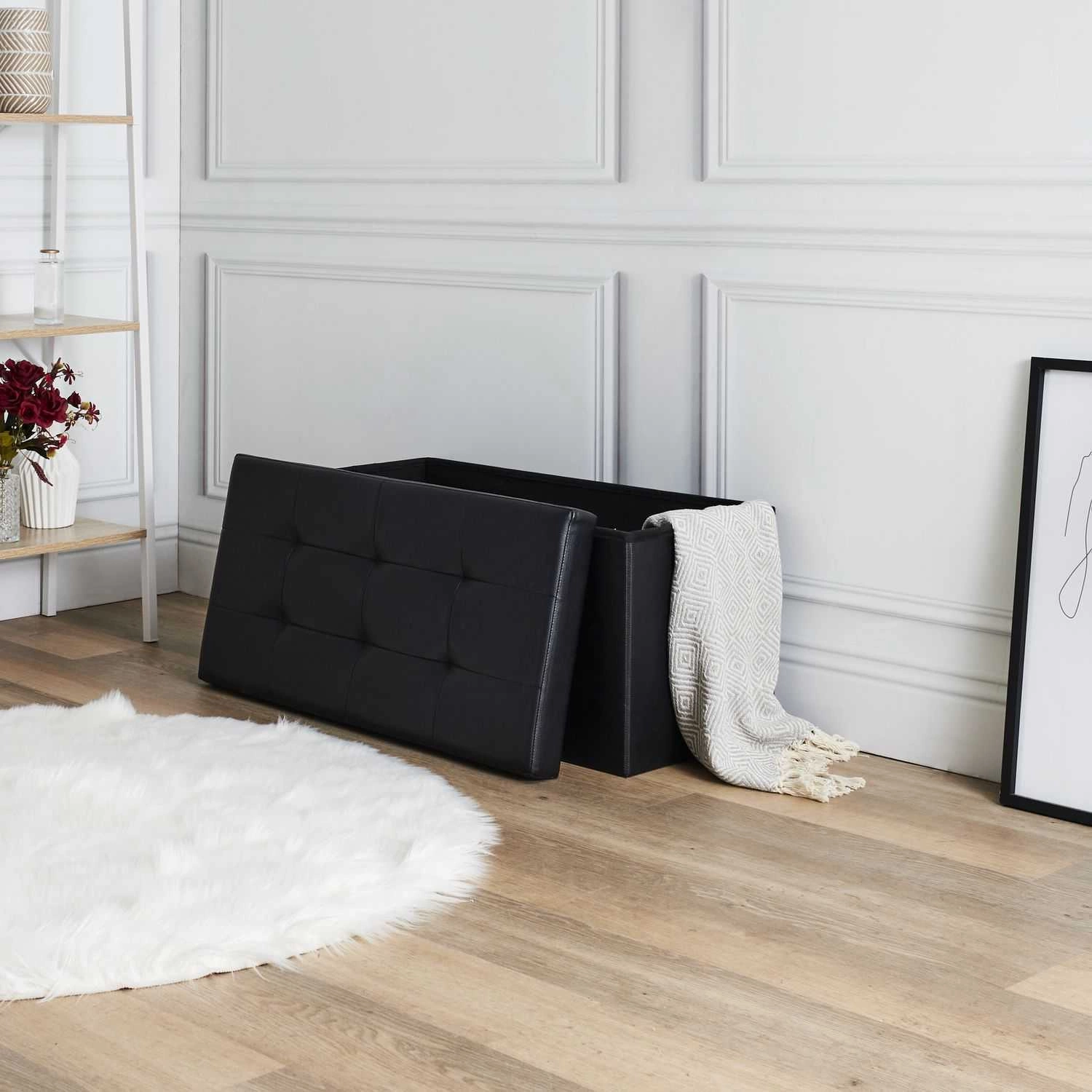 Pufa została zrobiona z poliestru oraz eko skóry w kolorze czarnym.