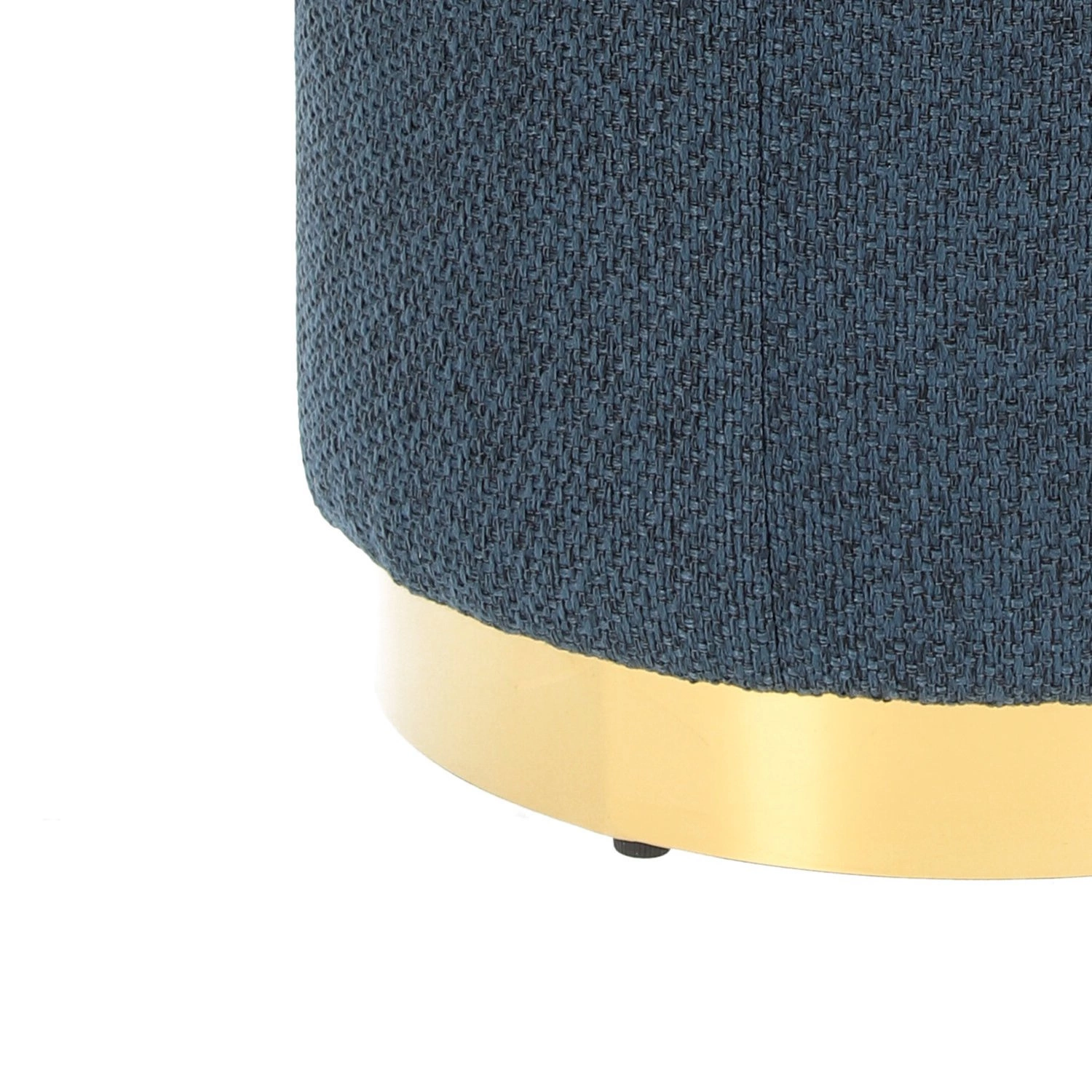 Pufa Kung w rozmiarze L to szykowny dodatek do nowoczesnego wnętrza. Wielowymiarowy kolor granatowej tapicerki został uzyskany dzięki połączeniu w procesie tkania różnokolorowych nitek. Gruby materiał o wyraźnej fakturze doskonale uzupełnia elegancka złota podstawa z metalu. Szerokie siedzisko w kształcie walca o wymiarach 35 cm x 42,5 cm doskonale sprawdzi się jako stylowy dodatek do salonu czy sypialni, podnóżek czy wygodna pufa do przedpokoju.