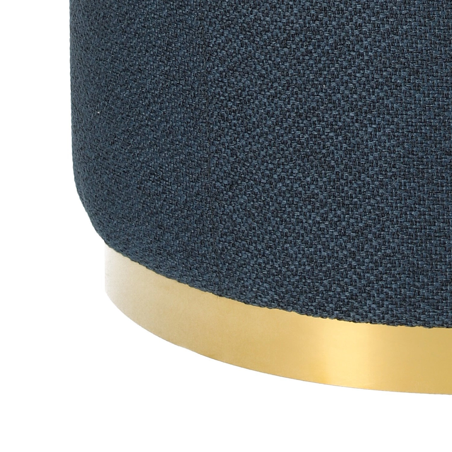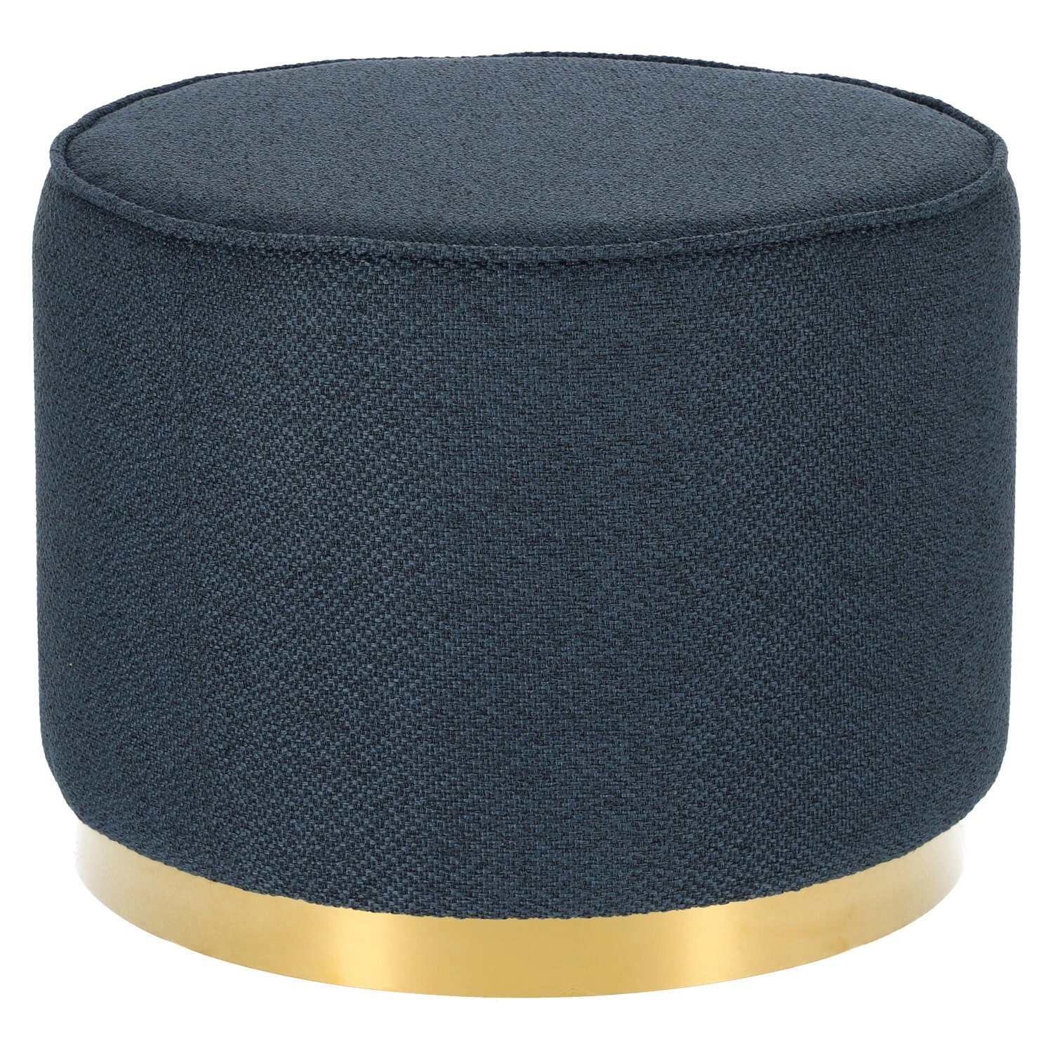 Pufa Kung XL to szykowny dodatek do nowoczesnego wnętrza. Wielowymiarowy kolor granatowej tapicerki został uzyskany dzięki połączeniu w procesie tkania różnokolorowych nitek. Gruby materiał o wyraźnej fakturze doskonale uzupełnia elegancka złota podstawa z metalu. Szerokie siedzisko w kształcie walca o wymiarach 60 cm x 47 cm doskonale sprawdzi się jako stylowy dodatek do salonu czy sypialni, podnóżek czy wygodna pufa do przedpokoju.