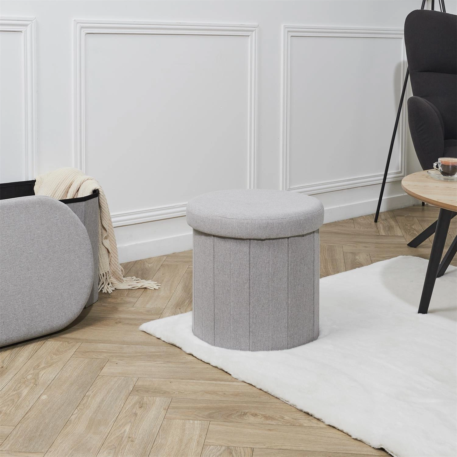 Składany Puf Olaf szary: Wygodne i funkcjonalne rozwiązanie do przedpokoju