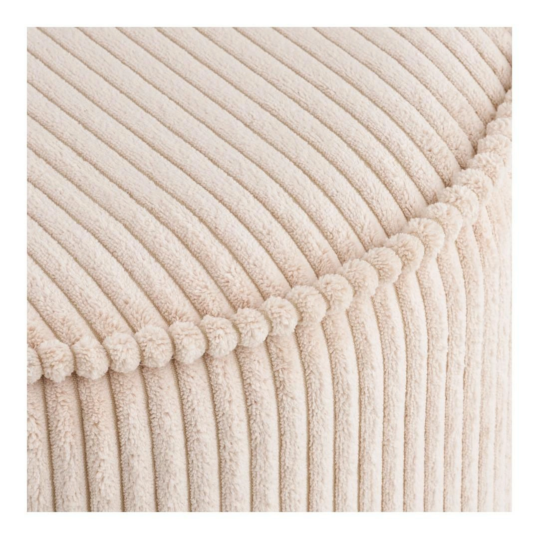 Pufa Taupo marki House Nordic to okrągła, beżowa pufa sztruksowa o wysokości 35 cm i średnicy 40 cm, idealna jako dodatkowe siedzisko do salonu, sypialni, przedpokoju lub pokoju młodzieżowego. Miękkie siedzisko wypełnione pianką tapicerską oraz aksamitnie wykończona tkanina sztruksowa zapewniają wygodę i przytulny efekt we wnętrzu.
