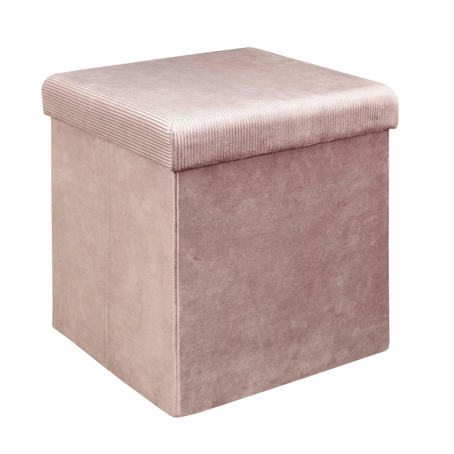 Pufa welurowa ze schowkiem Intesi Vels różowa glamour do salonu 38x38 cm składana