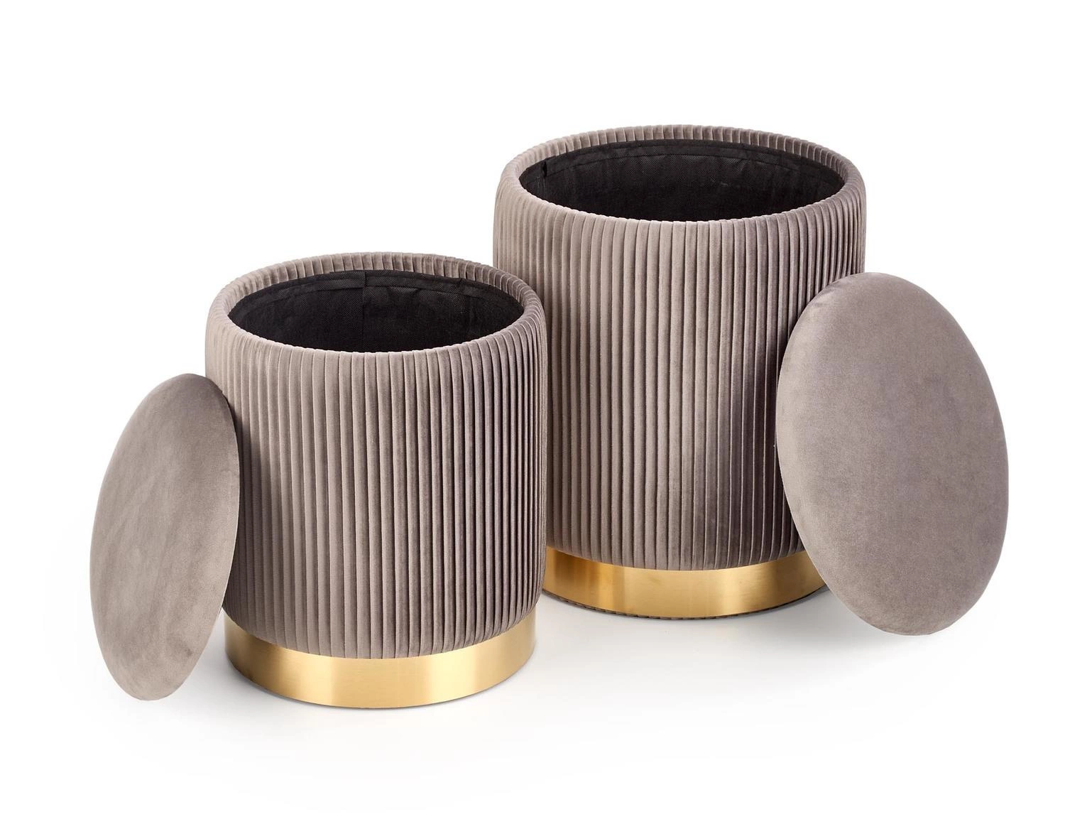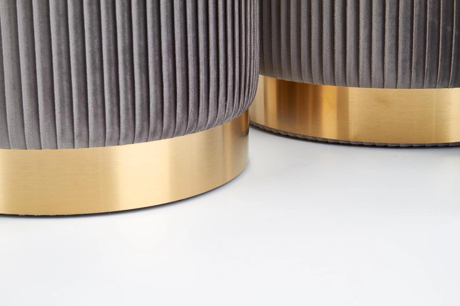 Zestaw 2 tapicerowanych puf Goltra szare | Intesi Zestaw 2 tapicerowanych puf Goltra od Intesi. Wykonane z tkaniny i chromowanej stali, nowoczesne pufy są dostępne w eleganckim połączeniu kolorów: szarym i złotym. Dodaj szyku swojej przestrzeni już dziś! Przedstawiamy zestaw 2 puf Goltra - idealne akcenty do każdego domu! Nasze pufy zostały zaprojektowane z myślą o jakości i stylu, z wytrzymałej tkaniny wykonanej z miękkiego i pluszowego materiału dla maksymalnego komfortu. Dzięki średnicy 36 cm i wysokości 44 cm, nasza większa pufa stanowi wyraz w każdym pomieszczeniu, podczas gdy mniejsza pufa ma średnicę 31 cm i wysokość 38 cm, co zapewnia dodatkową wszechstronność. Nie zapominajmy też o przyciągających wzrok odcieniach szarości i złota! Chromowana stalowa rama zapewnia zarówno stabilność, jak i równowagę - pozwalając ci z łatwością odpoczywać. Dodaj odrobinę stylu i relaksu do każdej części swojego domu dzięki naszym pufom Goltra. O tym warto pamiętać! Wzbogać swój dom o nowoczesny i stylowy zestaw puf. Oferuje dodatkową poduszkę do siedzenia lub podnóżek ze względu na swój duży rozmiar. Dostępne w modnych kolorach pasujących do każdego wystroju. Trwała i solidna konstrukcja wykonana z wysokiej jakości materiałów.