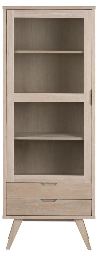 Wysoka gablota A-Line to piękny mebel, który będzie świetnie wyglądał w każdym wnętrzu. Posiada cztery półki do przechowywania za przeszklonymi drzwiami oraz dwie szuflady. Drewno dębowe nadaje jej klasyczny i elegancki styl.