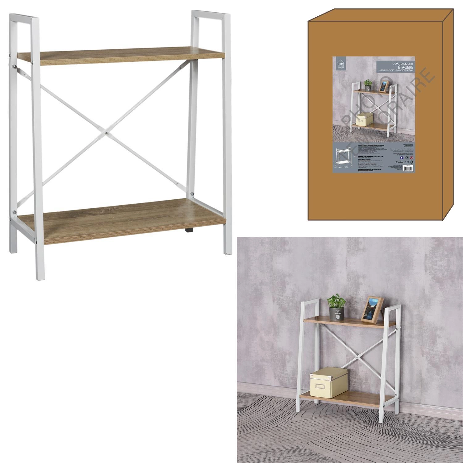 - metalowy regał otwarty z 2 półkami z płyty MDF