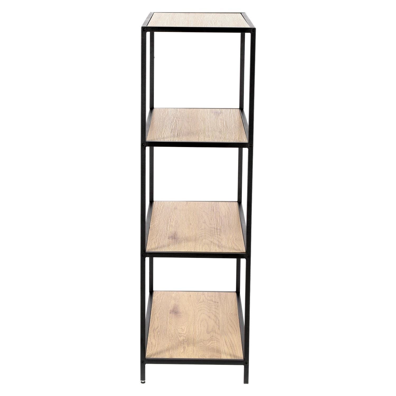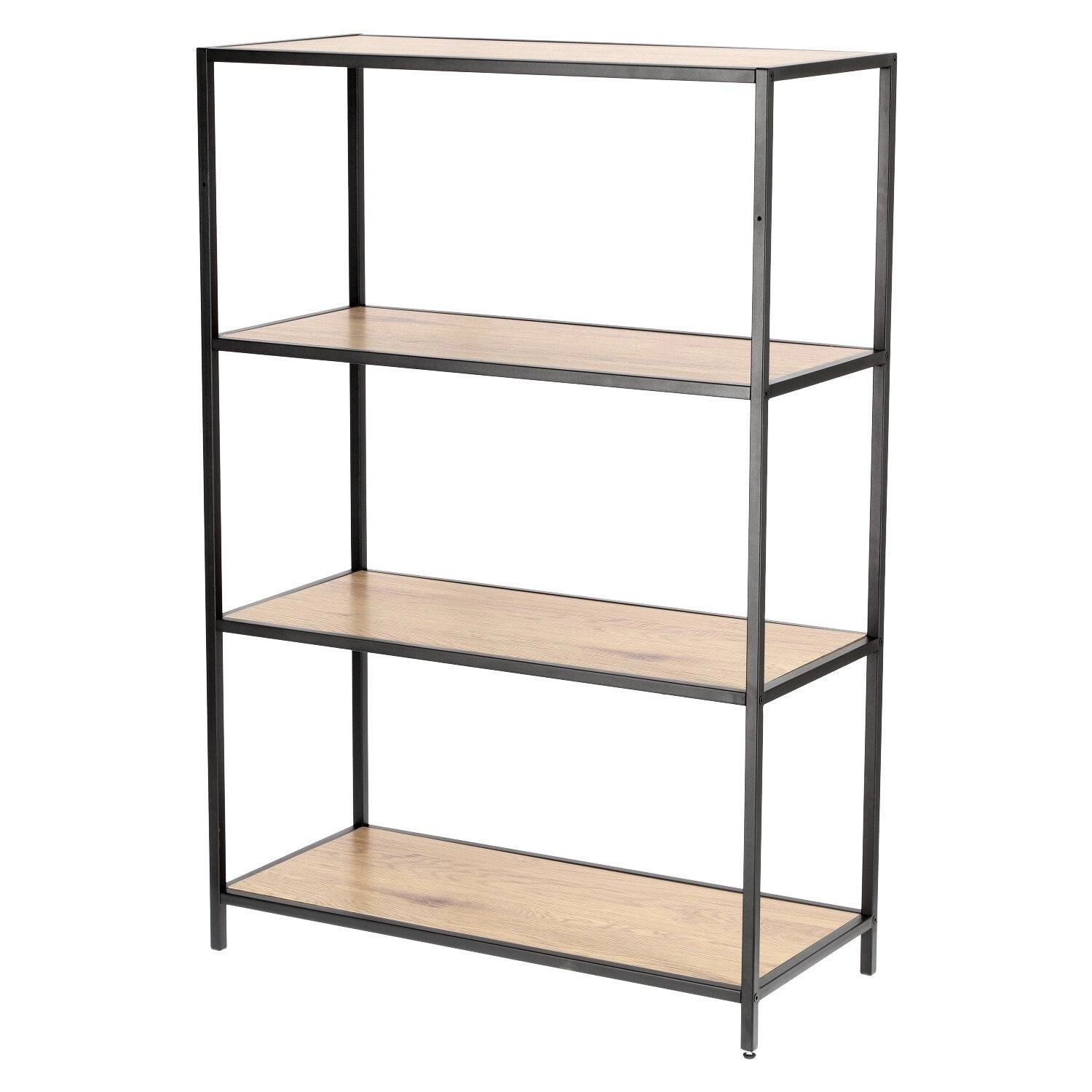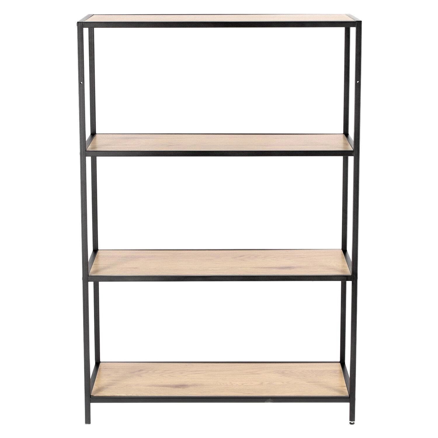 Dzięki czterem pojemnym półkom regał Seaford I pozwala zagospodarować nawet niewielką przestrzeń w funkcjonalny sposób. Szerokość 77 cm i głębokość 35 cm umożliwiają ustawienie mebla zarówno przy ścianie, jak i jako subtelną przegrodę w otwartych wnętrzach typu loft. To idealny regał na książki, dekoracje czy rośliny doniczkowe – zarówno w salonie, jak i w domowym gabinecie.