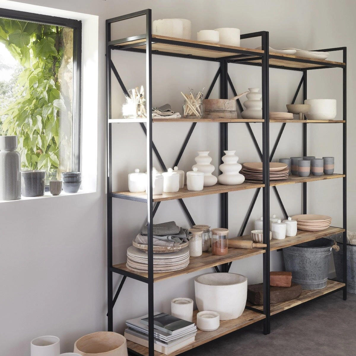 - Regał Edena to połączenie metalu i drewna akacjowego - surowego, ale eleganckiego stylu industrialnego.