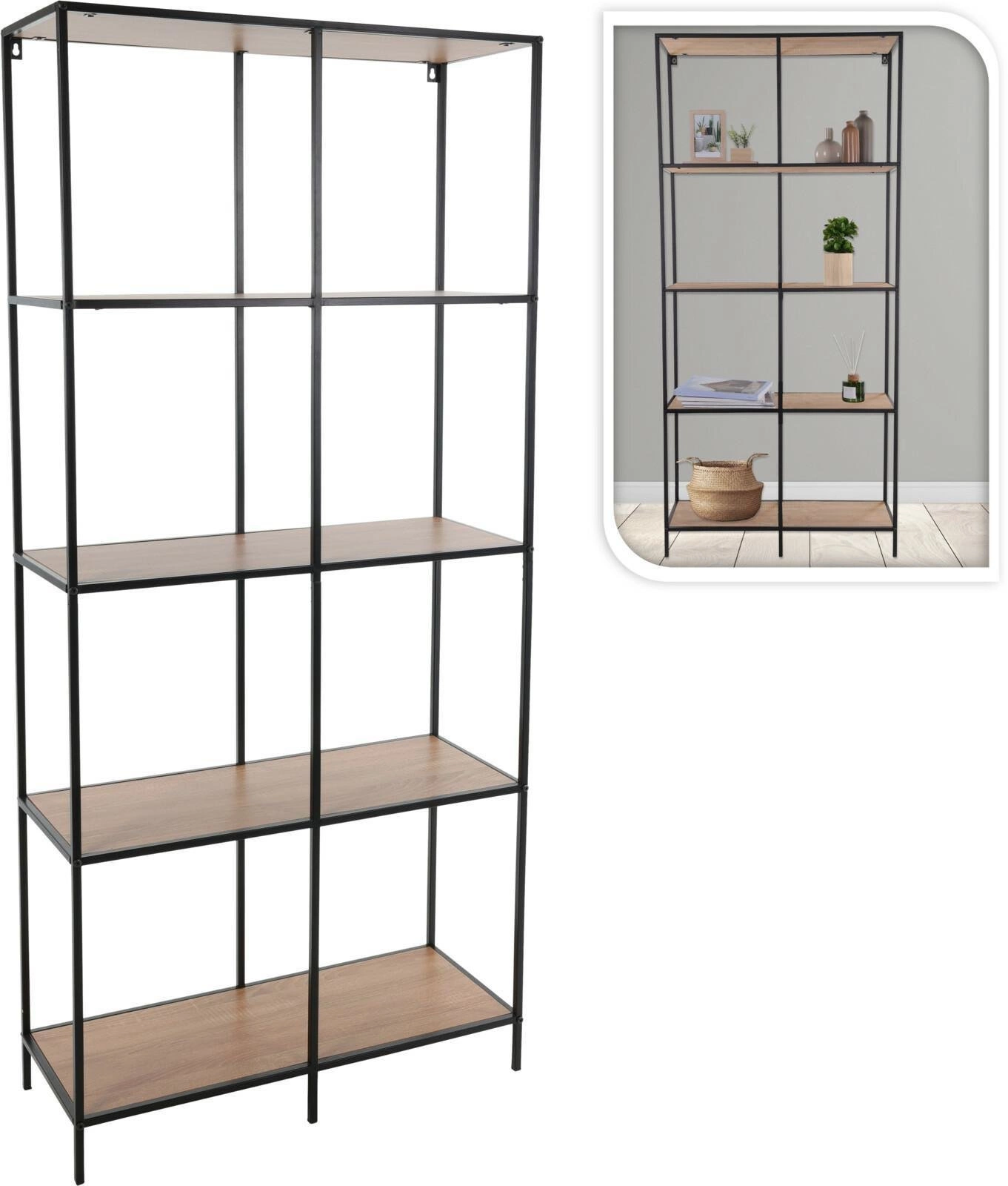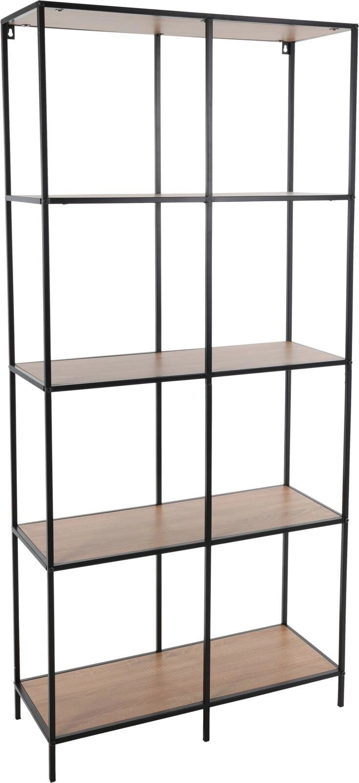 Regał Ford wyposażony został w 4 szerokie półki, które pozwolą ci uporządkować przeróżne rzeczy. Począwszy od stosu książek, wielu dekoracji i pucharów. Ford sprawdzi się jako regał na dużą ilość kwiatów ze względu na swoją minimalistyczną formę. Mebel wykonany został ze stelaża o grubości 13 mm. Każda z jego czterech półek jest dzięki temu dobrze zabezpieczona i możemy na niej przechowywać przedmioty do maksymalnie 6 kg na półkę. Odstępy między półkami to aż 40 cm. Regał stoi na 6 nóżkach, które gwarantują niespotykaną stabilizację tak wysokiego mebla. Półki Regału wykonane zostały z wytrzymałej płyty MDF ozdobionej okleiną w kolorze drewna. Wymiary opakowania: 80x10x93cm. Regał wymaga montażu.
