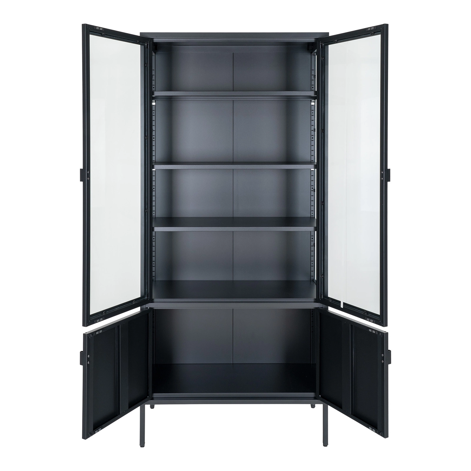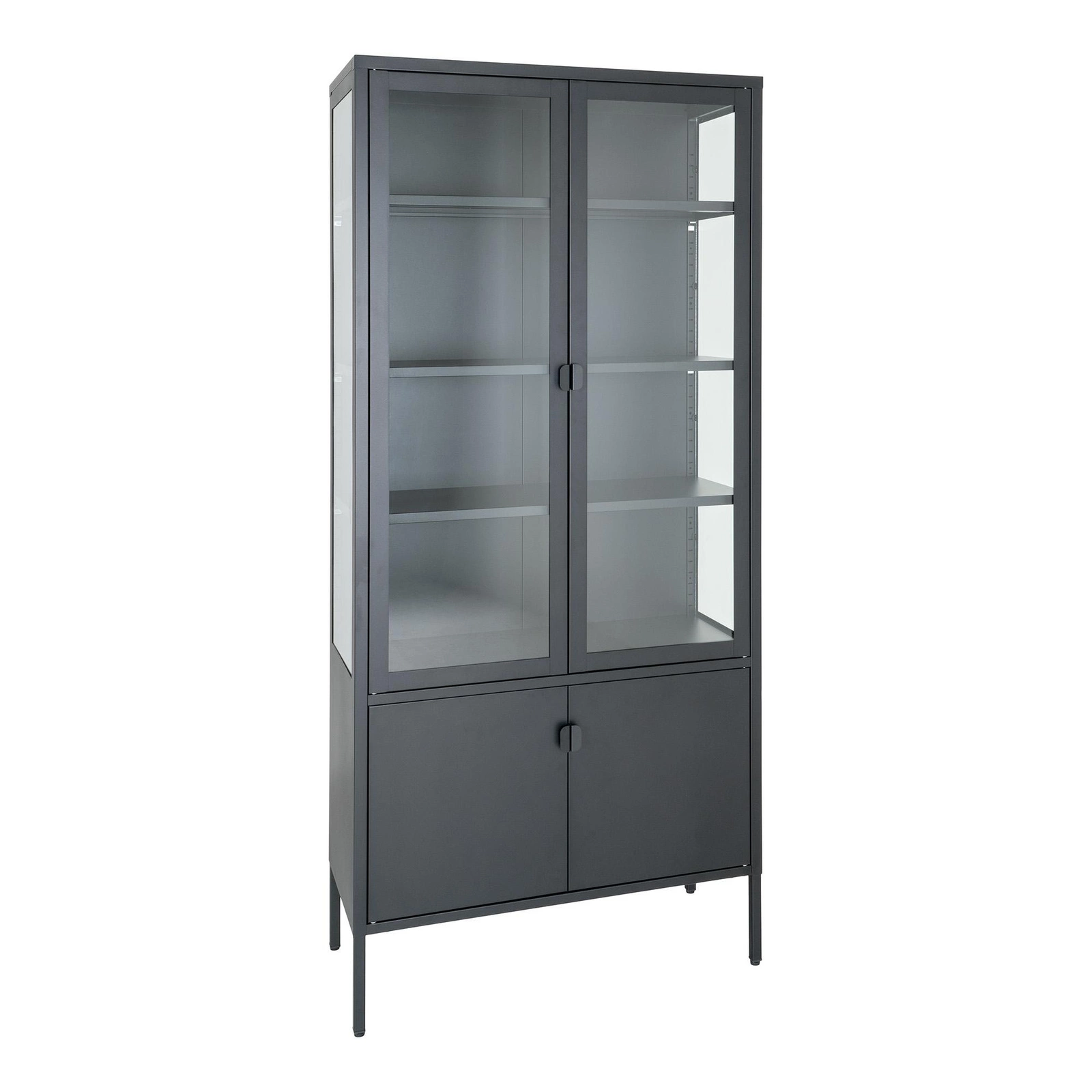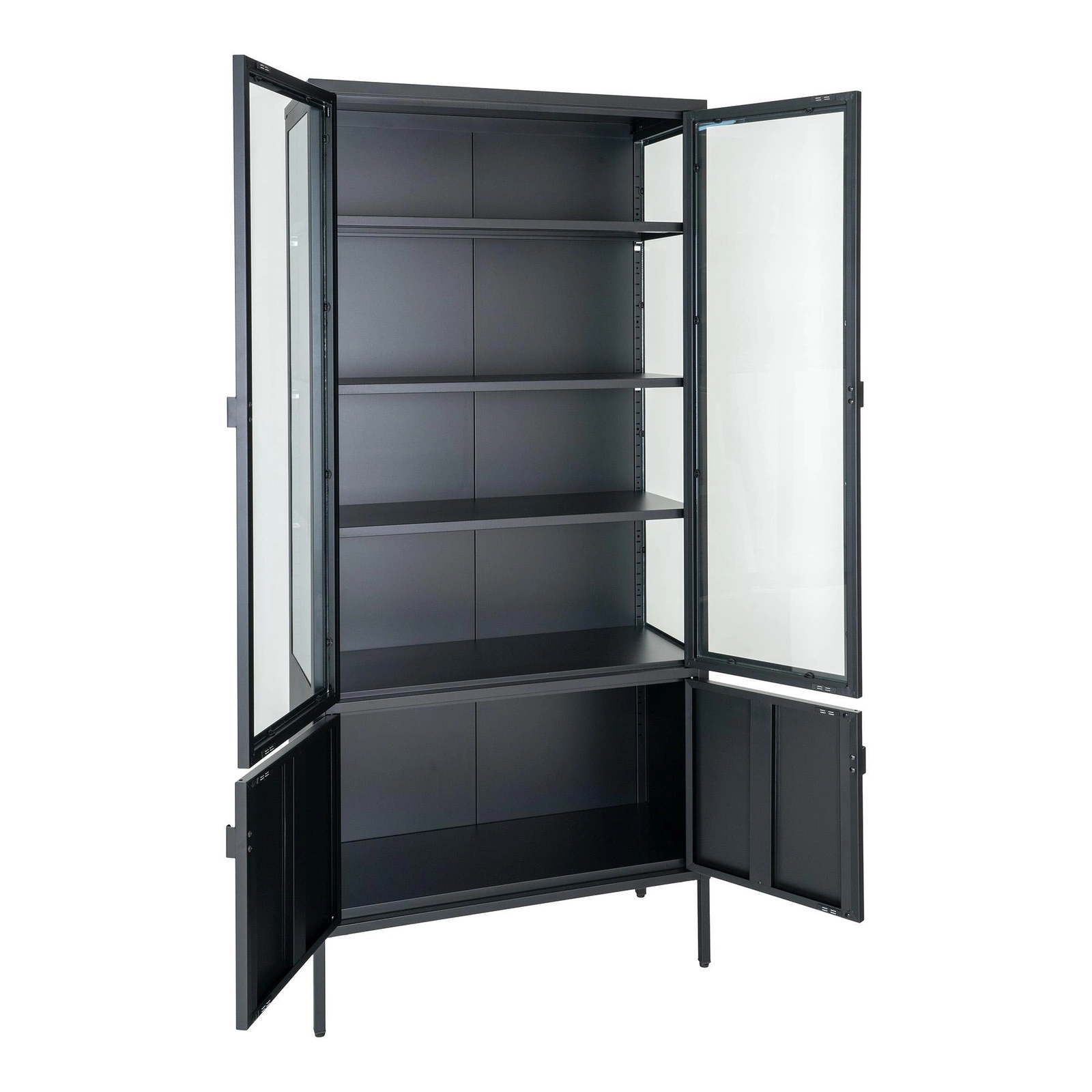 Regał Brisbane 2 drzwi czarny to niezwykle wytrzymały mebel, który łączy w sobie funkcjonalność z nowoczesnym stylem. Wykonany z wytrzymałej stali malowanej proszkowo oraz szkła, co gwarantuje jego długotrwałość. Cztery metalowe nogi zapewniają stabilność, a całość utrzymana jest w czarnym kolorze, co nadaje mu eleganckiego wyglądu. Regał doskonale sprawdzi się w każdym pomieszczeniu - od salonu, przez pokój młodzieżowy, aż po biuro. Dzięki swoim wymiarom, 80 cm szerokości i 180 cm wysokości, pomieści wiele przedmiotów. Maksymalne obciążenie każdej z półek wynosi 15 kg, co pozwala na przechowywanie zarówno książek, jak i cięższych przedmiotów.