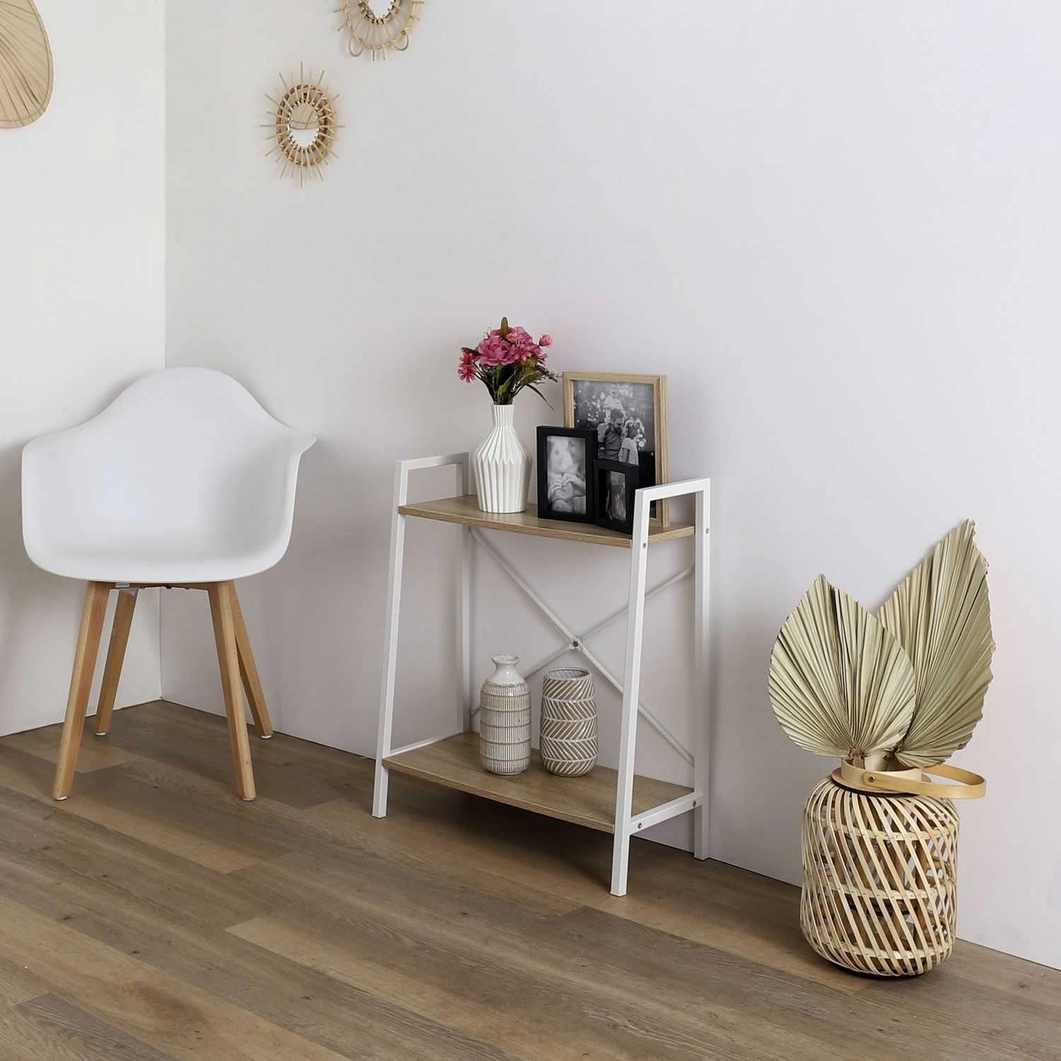 - metalowy regał otwarty z 2 półkami z płyty MDF