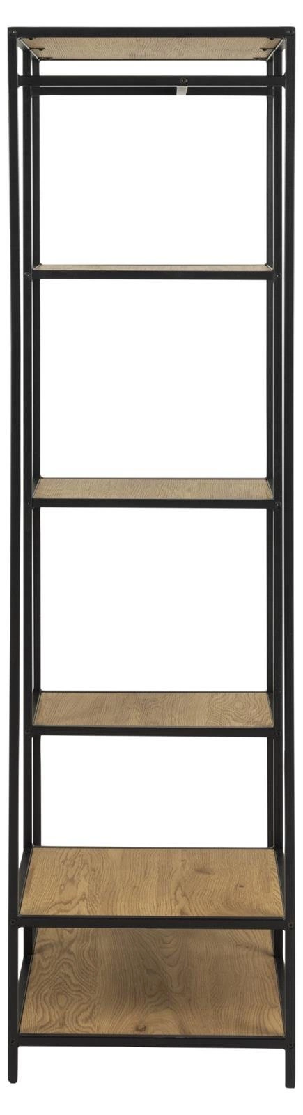 Seaford to coś więcej niż otwarty regał do garderoby. Pięć przestronnych półek ułatwia segregację ubrań, butów czy pudełek z dodatkami, a otwarta konstrukcja umożliwia szybki dostęp do zawartości. Dzięki smukłej sylwetce i stabilnej podstawie na czterech nogach, mebel nadaje się także do sypialni, gdzie może służyć jako regał na tekstylia lub stylowy ekspozytor dla dekoracji. Wykończenie w półmacie podkreśla industrialny charakter i sprawia, że regał prezentuje się efektownie w każdym świetle.