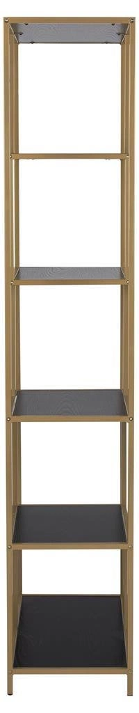 Regał metalowy Seaford II marki Actona to połączenie industrialnego charakteru z eleganckimi akcentami – stabilna złota rama i pięć czarnych półek o szerokości 77 cm tworzą designerski mebel, który przyciąga wzrok. Wysokość 185 cm i głębokość 35 cm zapewniają optymalną ilość miejsca na książki, dekoracje czy rośliny, czyniąc regał na książki idealnym wyborem do salonu, biura czy jadalni. Metalowa konstrukcja gwarantuje trwałość, a matowe wykończenie dodaje wnętrzu wyrazistości.