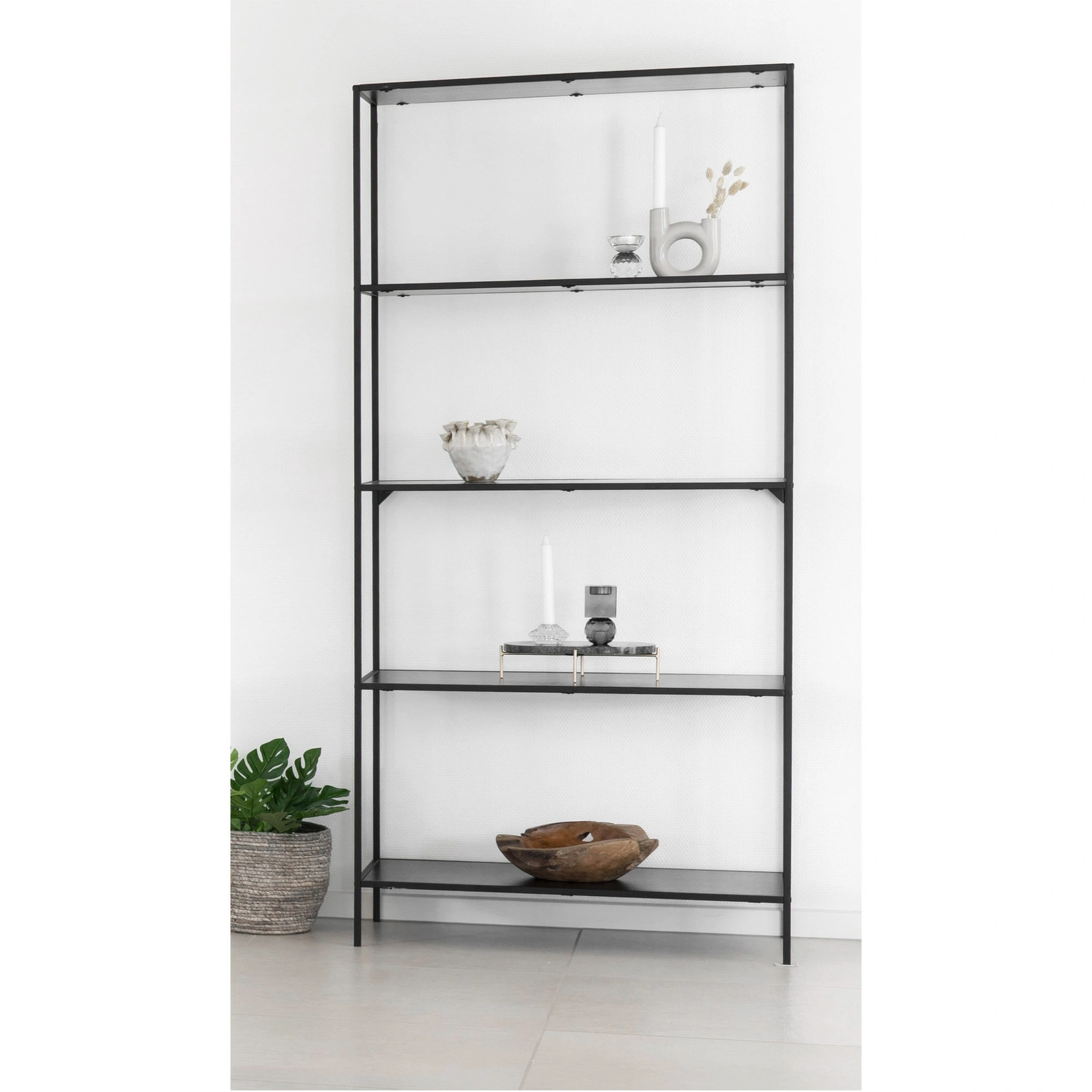 Półka, 5 półek, metalowa, czarna, 80 x 36 x 170 cm, stal Płyta wiórowa, folia melaminowa