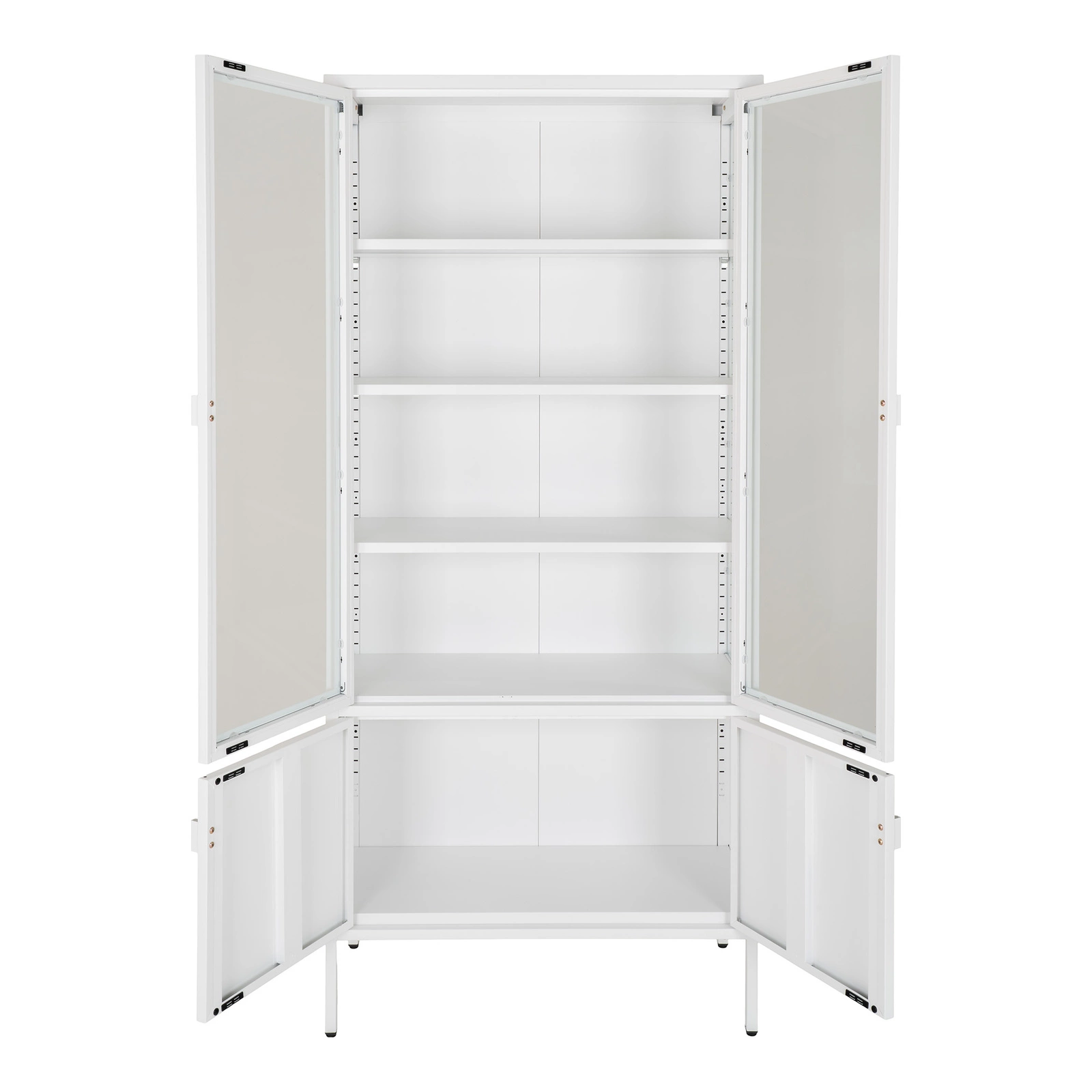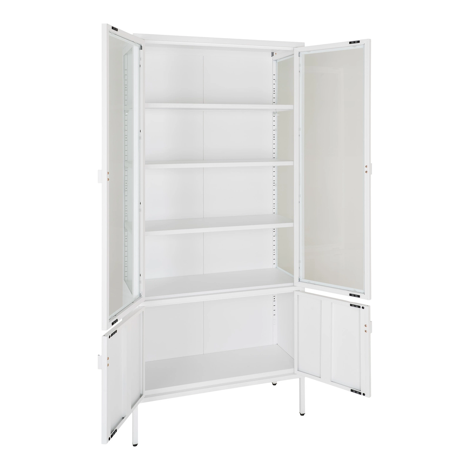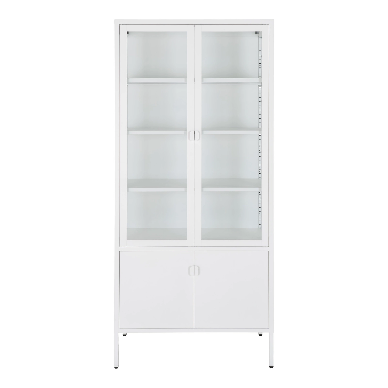 - Regał Brisbane 2 drzwi biały to połączenie stali malowanej proszkowo i szkła.