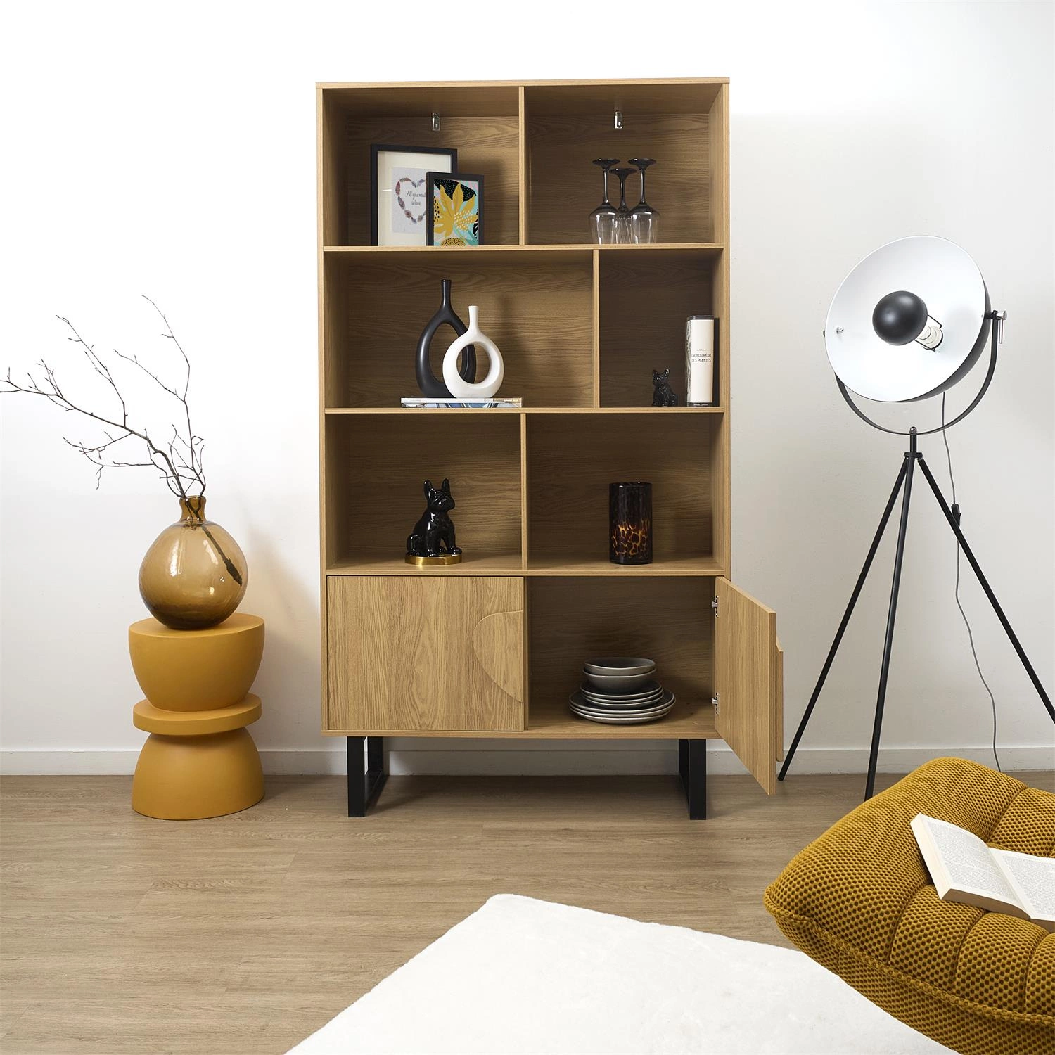 Regał na książki Calypso marki Intesi to połączenie naturalnego wykończenia, solidnej konstrukcji oraz funkcjonalnych rozwiązań idealnych do nowoczesnych przestrzeni. Wysokość 180 cm i szerokość 100 cm sprawiają, że mebel oferuje dużo miejsca na książki, dekoracje czy akcesoria, a przemyślana szafka z dwoma drzwiami pozwala ukryć to, co nie musi być na widoku. Industrialny, loftowy styl podkreślają czarne metalowe płozy oraz matowa powierzchnia imitująca naturalne drewno – wszystko to sprawia, że regał Calypso doskonale odnajdzie się w salonie, gabinecie, biurze czy pokoju młodzieżowym.