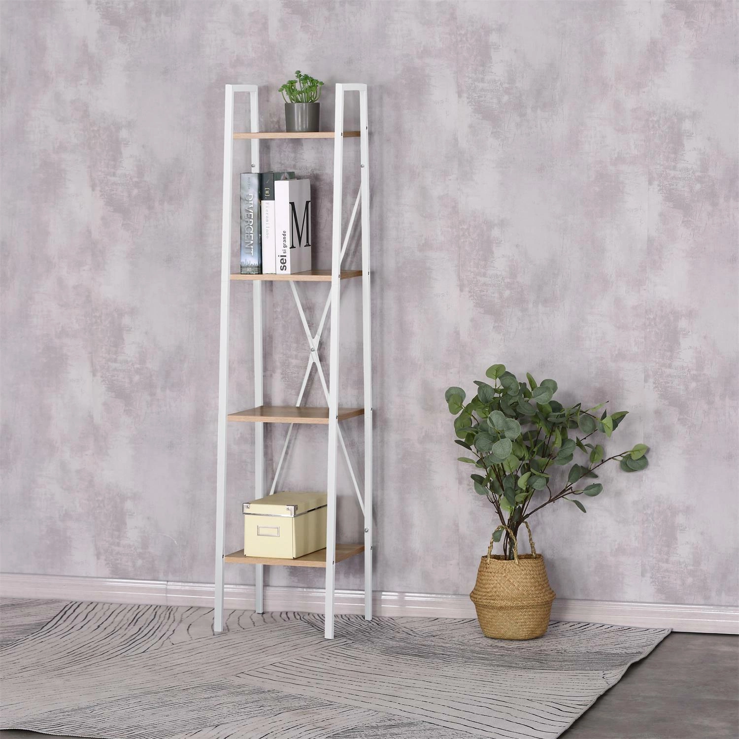 - metalowy regał otwarty z 4 półkami z płyty MDF