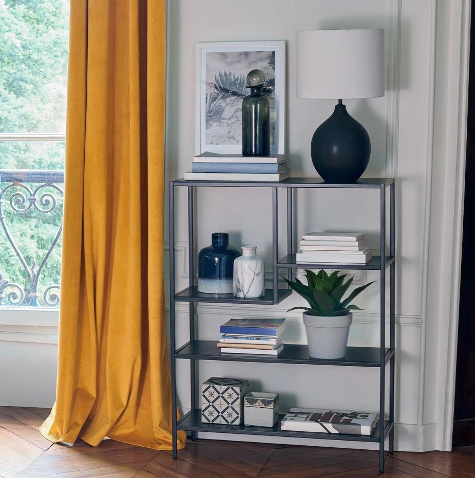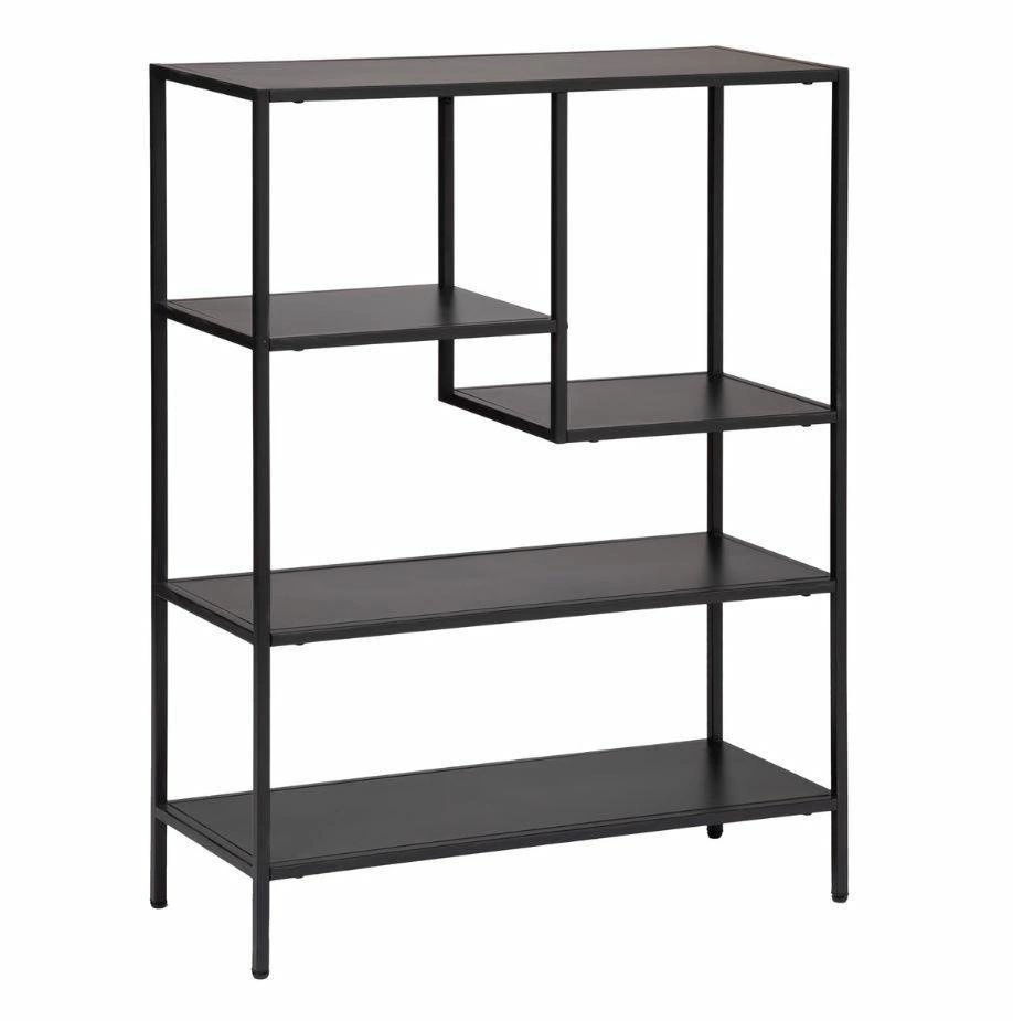 Czarny metalowy regał Gota o wysokości 100 cm pozwoli Ci wyeksponować kwiaty, książki lub inne przedmioty, które chcesz mieć pod ręką. Regał z 5 półkami i górną częścią do przechowywania sprawdzi się również w biurze jako miejsce na segregatory i dokumenty.