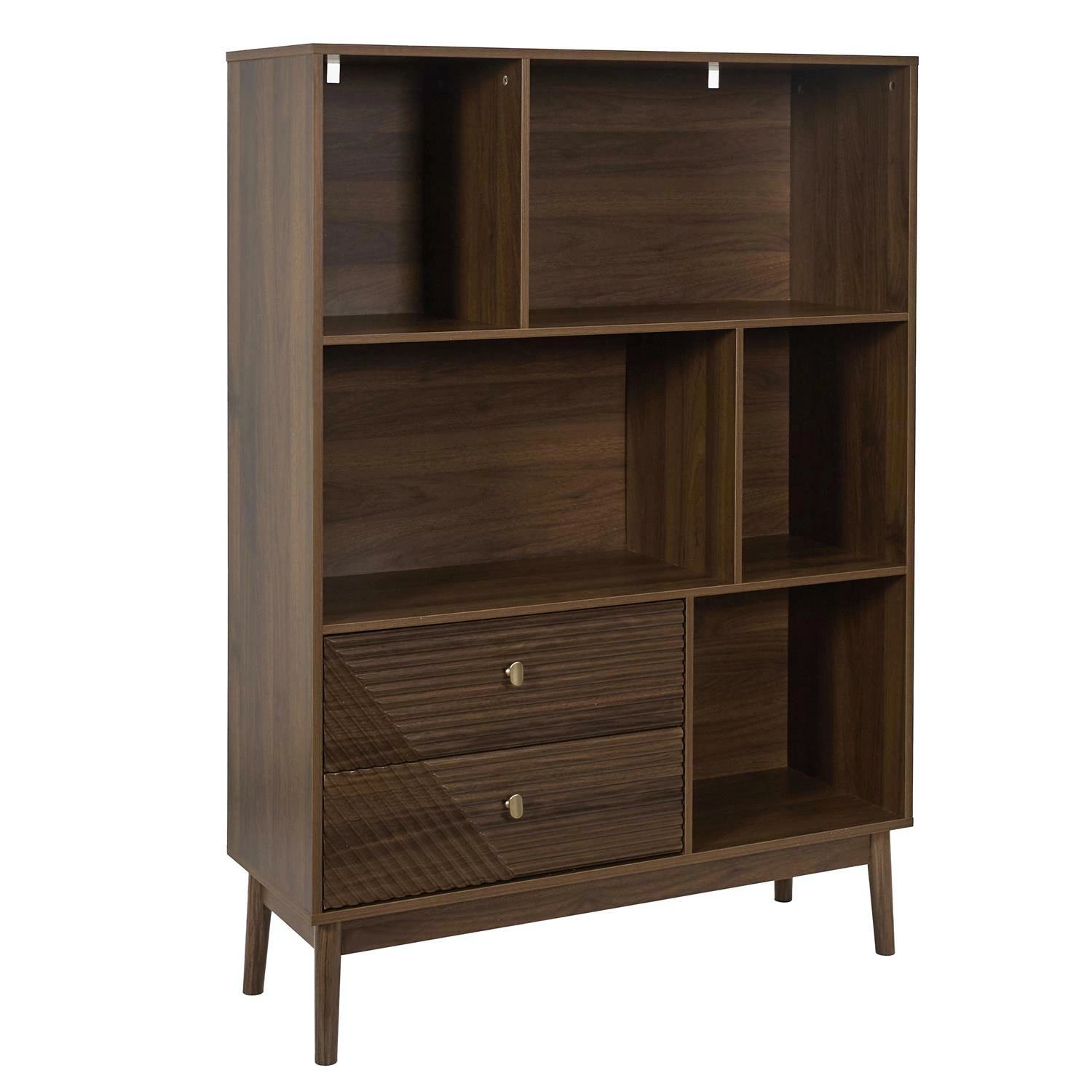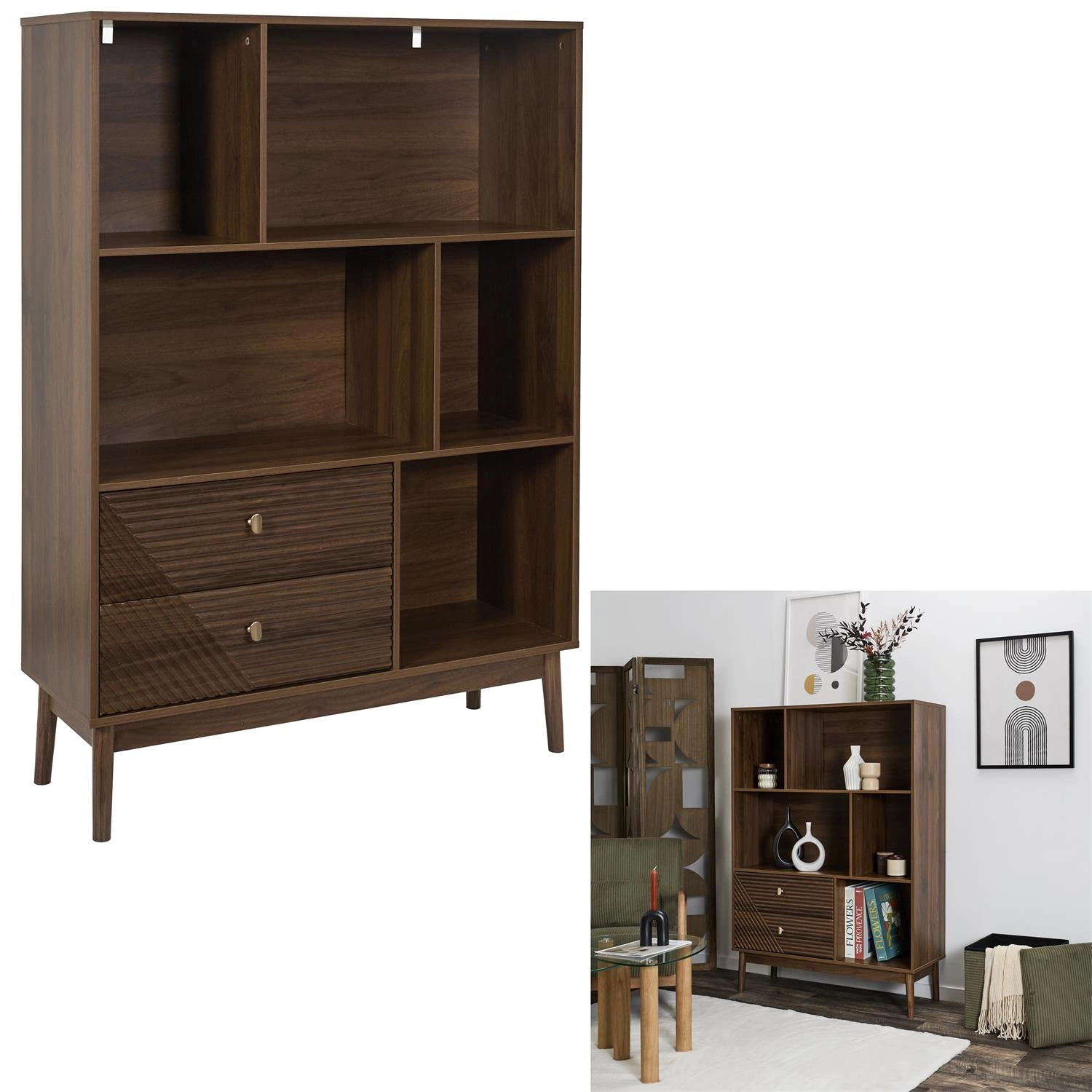 Materiał: Płyta MDFw okleinie imitującej orzech. Nogi drewno sosnowe, uchwyty metal.