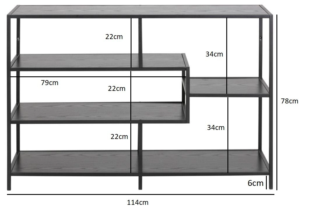 Regał Seaford V to prosty, ale jednocześnie stylowy mebel, który będzie pasować do wnętrz nowoczesnych, industrialnych i w stylu skandynawskim. Podstawa wykonana jest z malowanego proszkowo metalu w kolorze czarnym. Pięć nieregularnie rozmieszczonych półek z płyty MDF zostało pokrytych laminatem w kolorze naturalnego jasnego dębu. Nogi zakończone są gumowymi elementami, które stabilizują całość i zapobiegają przesuwaniu się. Dzięki zastosowaniu wysokiej jakości materiałów regał jest wytrzymały i odporny na uszkodzenia mechaniczne. Sprawdzi się w salonie, sypialni, a także w pokoju młodzieżowym. Jest to praktyczne i ciekawe wizualnie rozwiązanie, które zadowoli miłośników minimalizmu i współczesnego designu.