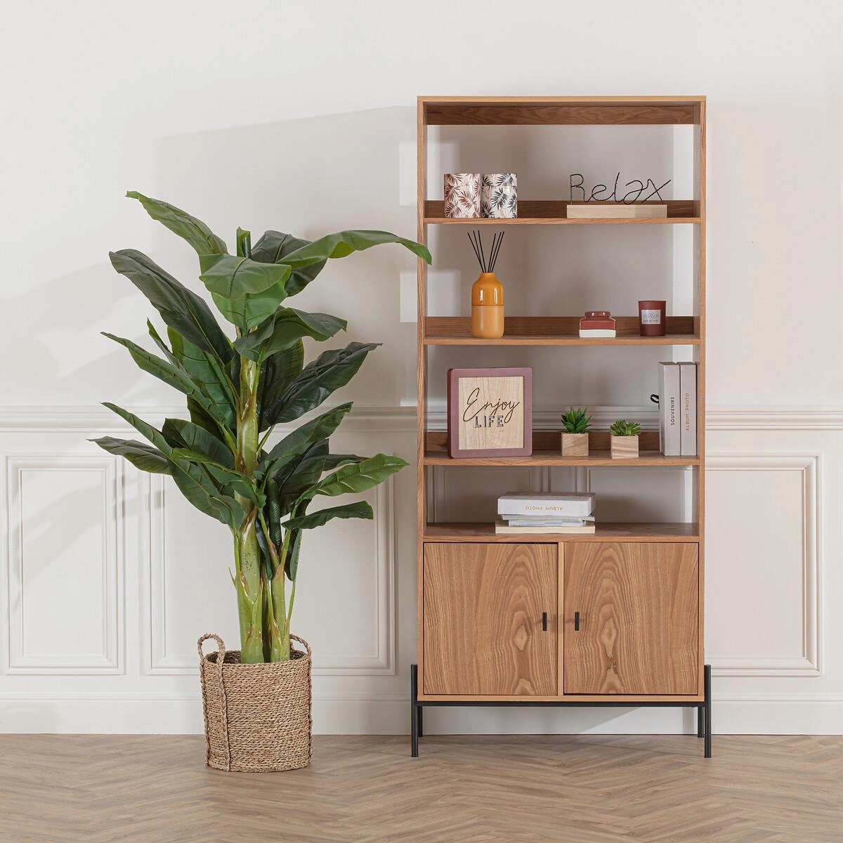 Regał Simon to mebel, który będzie pasował do każdego holenderskiego wnętrza. Ten wysoki, pojemny regał posiada cztery półki oraz dodatkowe dwie szafki.