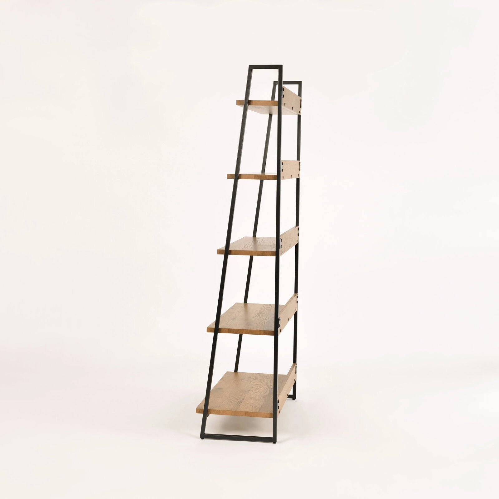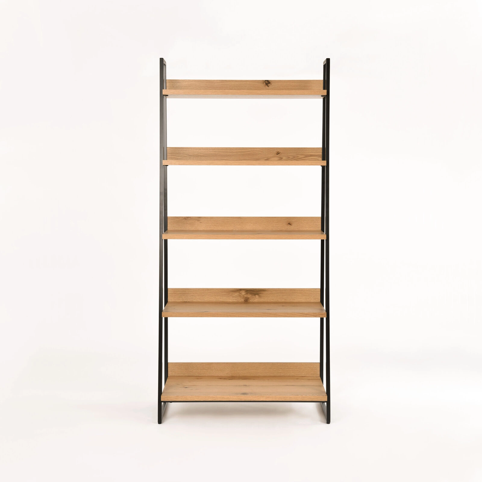 Półki regału wykonane są z wysokiej jakości litego drewna białego dębu, co nadaje im wyraźną strukturę i naturalny kolor. Pięć solidnych półek zapewnia dużo miejsca do przechowywania różnorodnych przedmiotów, książek czy ozdób, jednocześnie prezentując elegancki wygląd. Produkt jest częściowo zmontowany, co ułatwia finalny montaż, pozwalając dostosować go do indywidualnych potrzeb i preferencji. Kolorystyka regału, oparta na naturalnym dębie oraz ciemnografitowych nogach, stanowi harmonijną kompozycję, która doskonale wpasowuje się w różnorodne aranżacje pomieszczeń. Ze względu na solidne materiały i konstrukcję, regał ma wagę 37 kg, co świadczy o jego wytrzymałości i stabilności. To nie tylko praktyczny mebel do przechowywania, ale również designerski element, który nadaje unikalny charakter każdemu wnętrzu. Regał to element kolekcji mebli Sudin, dzięki czemu możesz stworzyć wnętrze pełne harmonii.