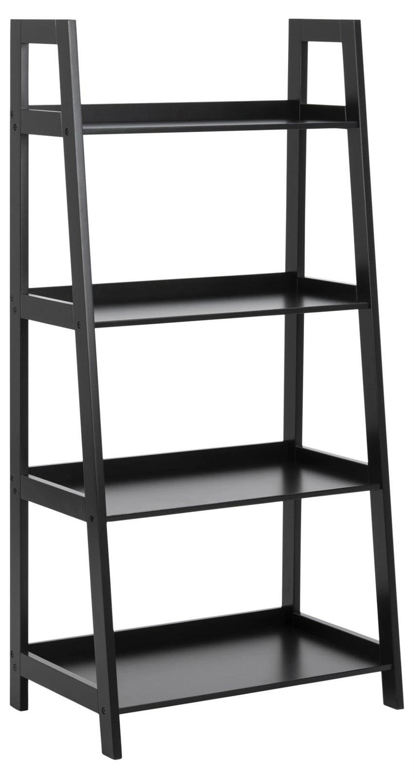 Regał Wally został zrobiony z drewna polakierowanego na czarno. Regał składa się z czterech półek, które są głębsze u dołu oraz coraz płytsze na górze. Efektowne połączenie bocznych nóg regału dodaje mu ponadczasowego wyglądu. Waga: 12 kg.