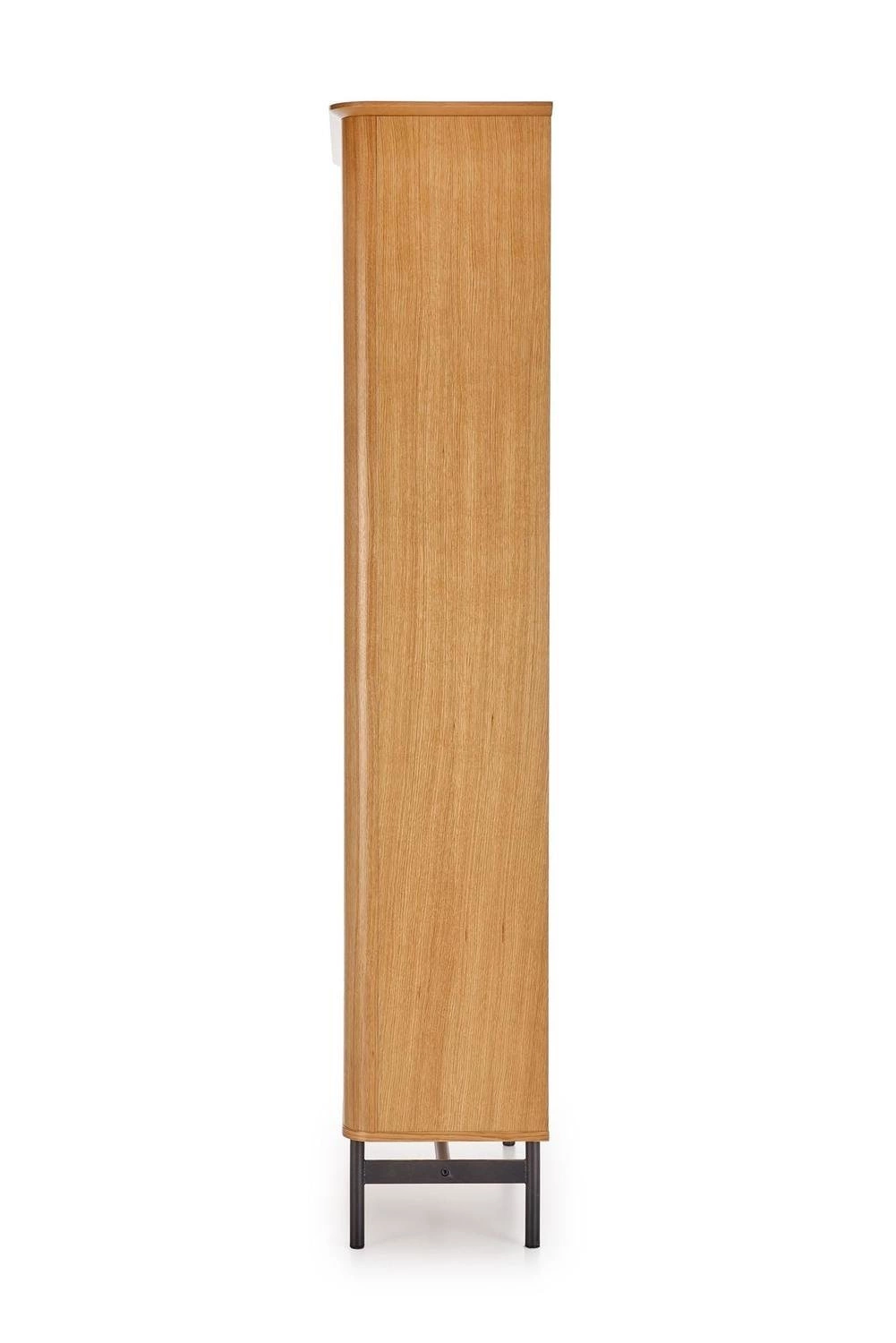 Regał Zefir został wykonany z wysokiej jakości materiałów. Korpus regału został wykonany z MDF-u, który został pokryty naturalną dębową okleiną, nadającą mu wyjątkowy urok. Nogi regału są wykonane z czarnej stali, malowanej proszkowo, co dodaje mu nowoczesnego charakteru. Połączenie naturalnego koloru dębu i czerni tworzy efektowną harmonię, dodającą elegancji i stylu. Regał oferuje wiele półek, które są idealne do przechowywania różnorodnych przedmiotów, takich jak dekoracje, książki czy pudełka. Dodatkowo, na dole regału znajduje się półka ukryta za drzwiczkami, zapewniająca dodatkowe miejsce do przechowywania rzeczy, które chcesz trzymać poza zasięgiem wzroku. Dodatkowo, regał Zefir jest łatwy do czyszczenia, co ułatwia utrzymanie go w nienagannej czystości. Wystarczy przetrzeć go wilgotną szmatką, aby pozbyć się kurzu i zabrudzeń.