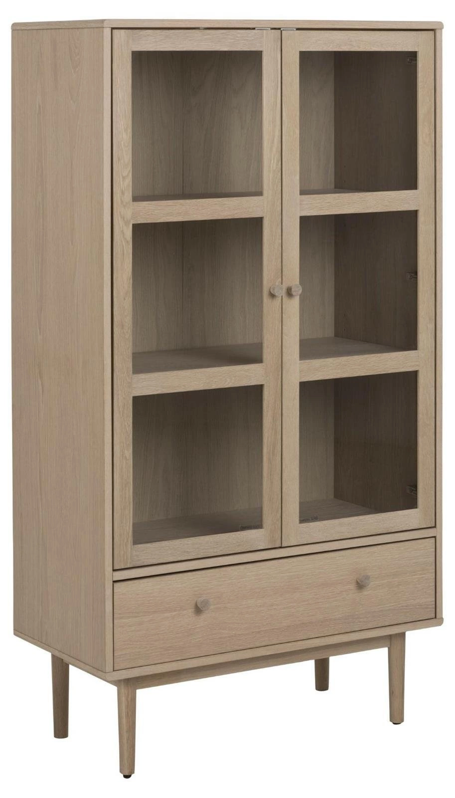Nowoczesna witryna na książki Aston to piękny dębowy mebel w skandynawskim stylu.