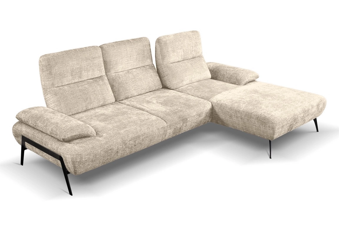 Narożnik do salonu Rasmus marki Intesi to nowoczesny, prawostronny narożnik w kolorze beżowym o imponującej szerokości 290 cm i głębokości 185 cm. Stworzony z myślą o codziennym wypoczynku, został wyposażony w regulowane oparcie, miękkie siedzisko wykończone przyjemną w dotyku tkaniną Perfect Harmony oraz stabilną metalową podstawę w czarnym kolorze. Ten elegancki narożnik idealnie dopełni aranżację salonu, oferując nie tylko wygodę, ale i wyjątkowy styl w nowoczesnej odsłonie.