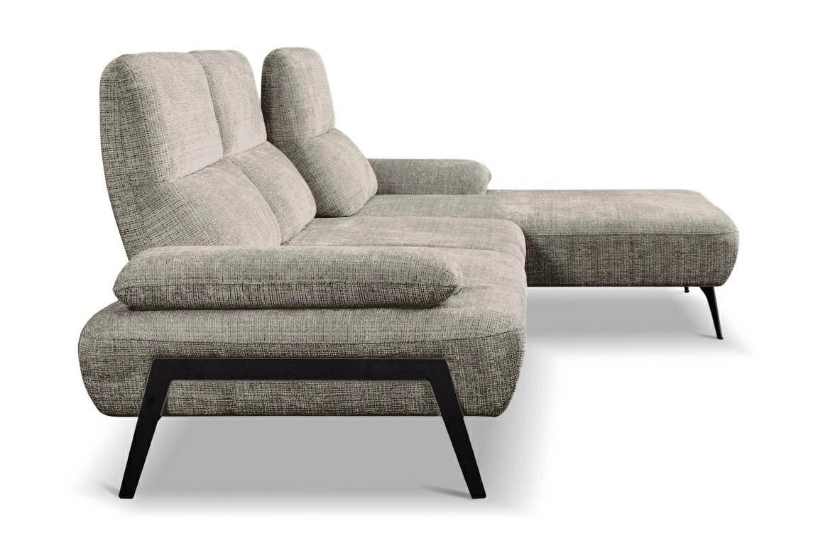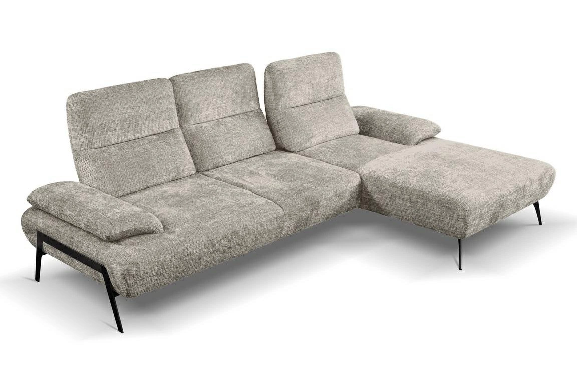 Narożnik do salonu Rasmus marki Intesi to nowoczesny, prawostronny narożnik o imponujących wymiarach 290×185 cm, tapicerowany jasnoszarą tkaniną Perfect Harmony. Model ten wyróżnia się nie tylko minimalistycznym wzornictwem, ale przede wszystkim możliwością regulacji oparcia, która pozwala dopasować poziom komfortu do indywidualnych preferencji każdego domownika. Stabilna, czarna podstawa z metalu oraz miękkie wypełnienie ze sprężyn i pianki zapewniają wygodę i trwałość na lata.