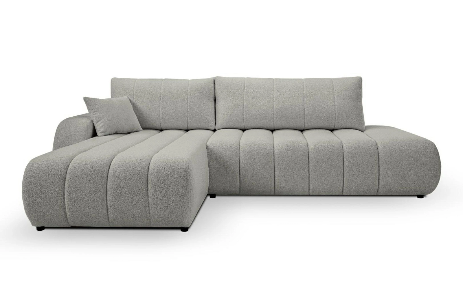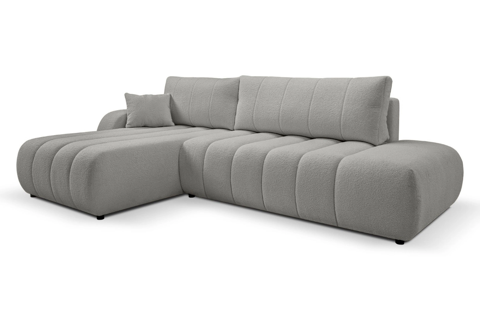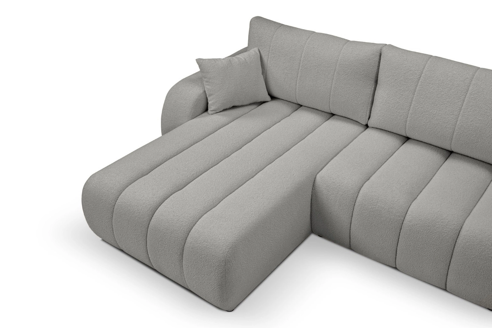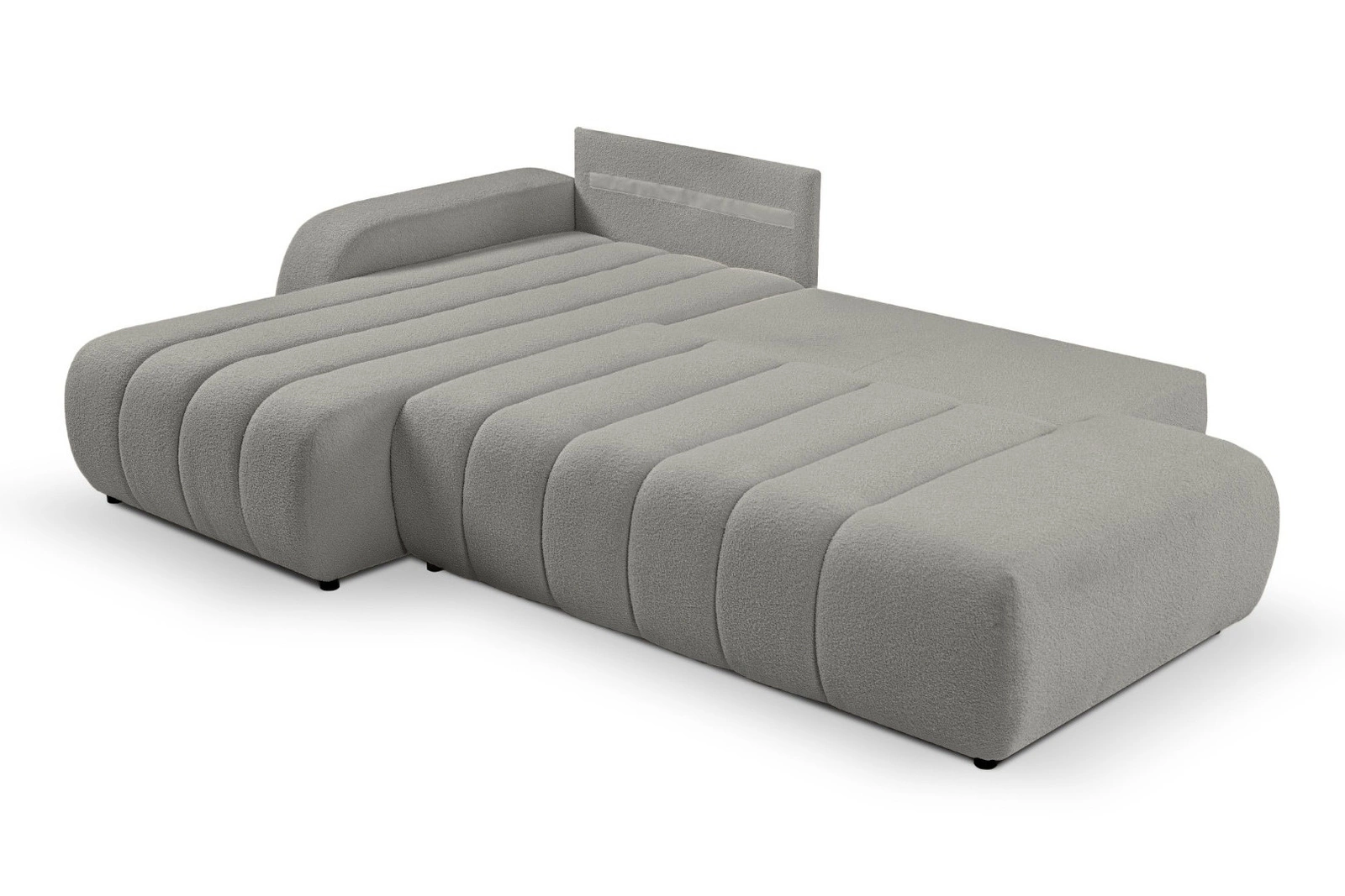 Wbudowany pojemnik na pościel ułatwia utrzymanie porządku i pozwala na wygodne przechowanie koców czy poduszek. Dzięki tapicerowanym plecom narożnik możesz ustawić nawet na środku pomieszczenia, zyskując elastyczność w aranżacji wnętrza. Stabilna podstawa na sześciu czarnych nogach z tworzywa ABS zapewnia trwałość i łatwość w utrzymaniu czystości, co docenią osoby ceniące praktyczne rozwiązania.