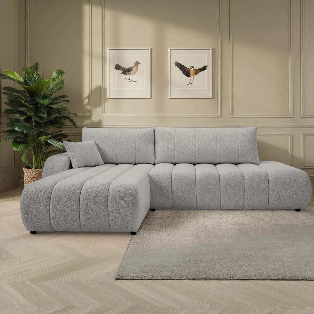 Narożnik Hobro lewy szary marki Intesi to nowoczesny narożnik z funkcją spania i pojemnikiem na pościel, zaprojektowany z myślą o wygodnym i stylowym salonie. Ten rozkładany narożnik w kształcie L zachwyca minimalistycznym, skandynawskim designem, przyjemną w dotyku tapicerką oraz praktycznymi rozwiązaniami do codziennego użytkowania. Szerokość 276 cm i głębokość 176 cm tworzą przestronne miejsce do relaksu, a powierzchnia spania 145x212 cm zapewnia komfortowy sen zarówno na co dzień, jak i okazjonalnie dla gości.