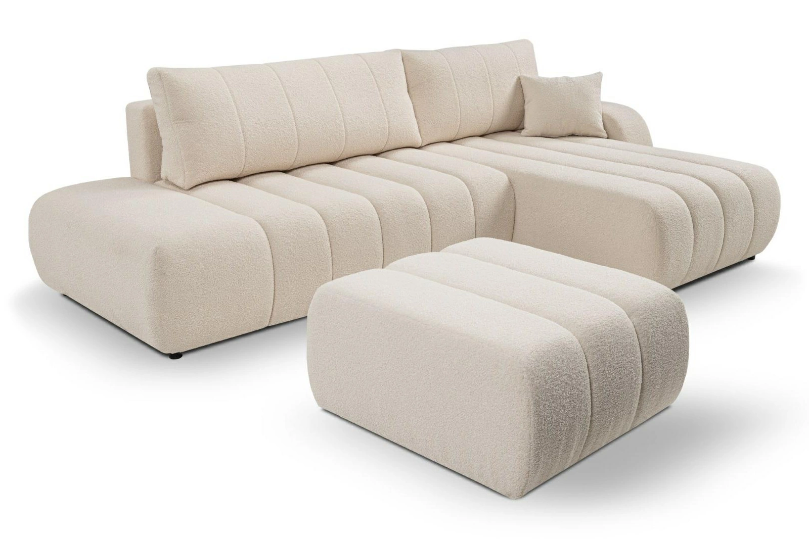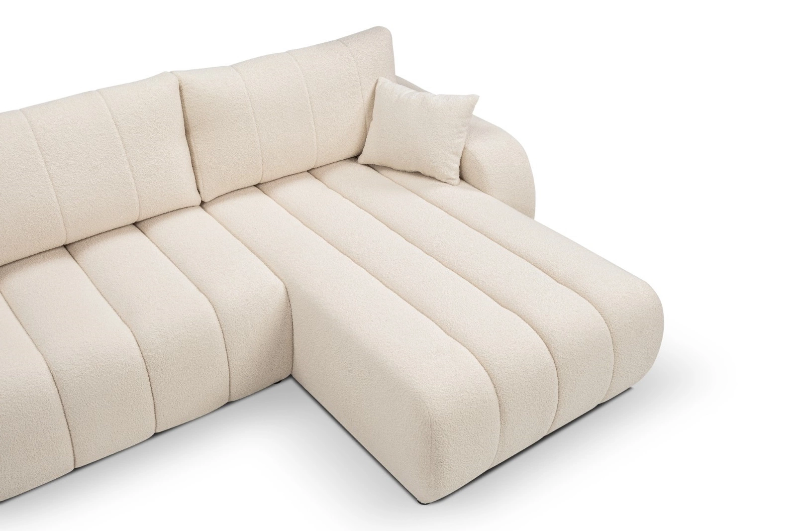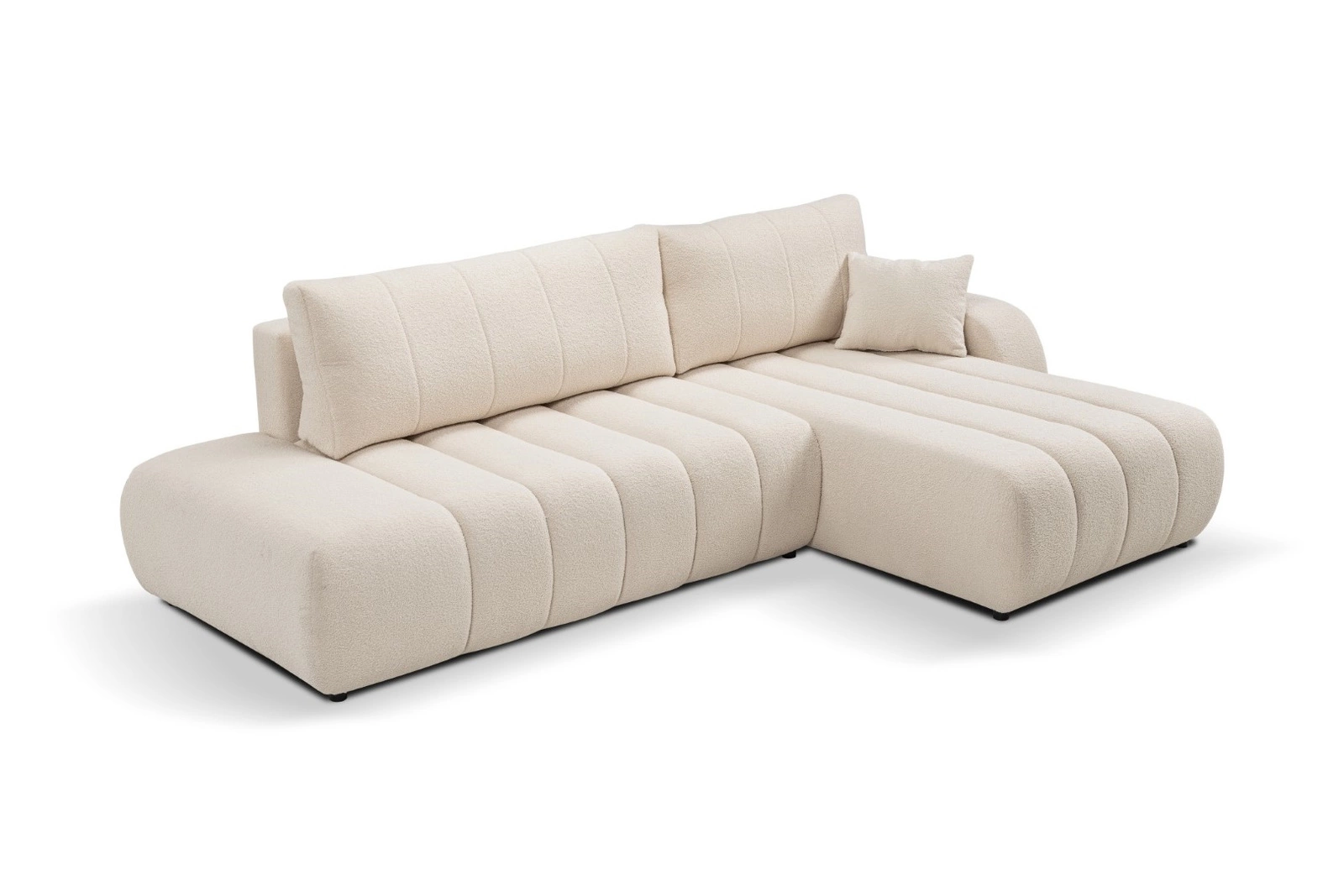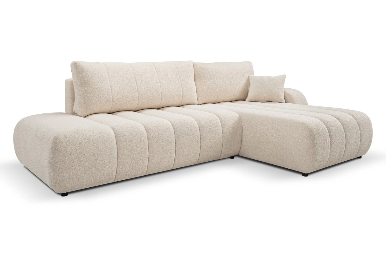 Narożnik Hobro z funkcją spania prawy kremowy Lambi 8 – elegancja i funkcjonalność w jednym