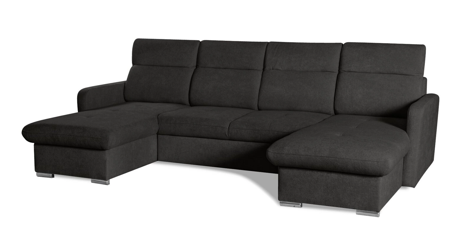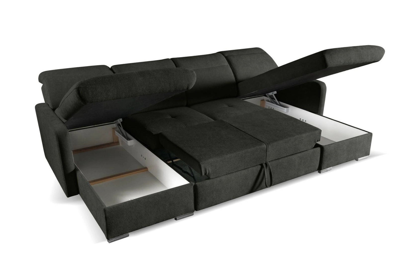 Narożnik Limi U marki Intesi to nowoczesny narożnik w kształcie litery U, utrzymany w eleganckim, antracytowym kolorze. Oferuje przestronne miejsce do wypoczynku, funkcję spania o powierzchni 256×120 cm oraz praktyczny pojemnik na pościel. Stabilna konstrukcja z drewna bukowego i wygodne siedzisko na sprężynach falistych gwarantują trwałość i komfort na co dzień.