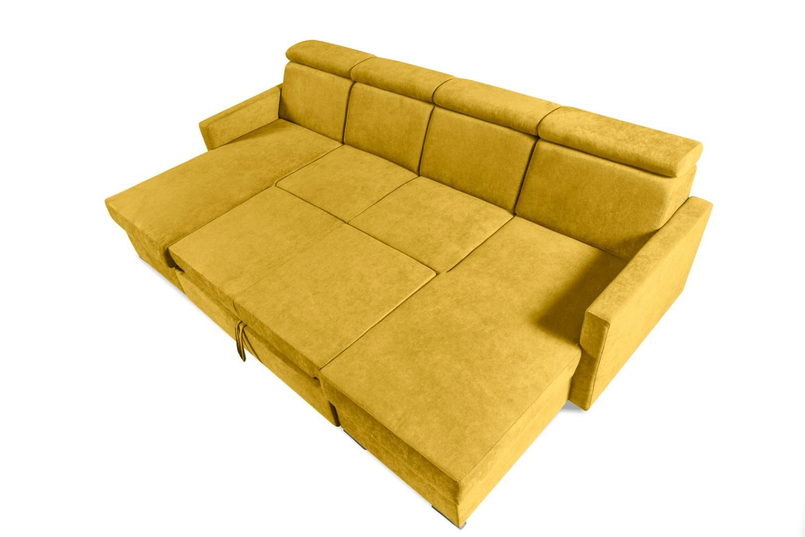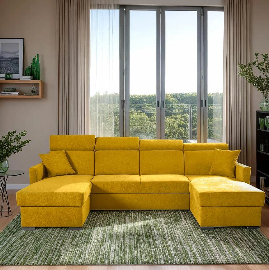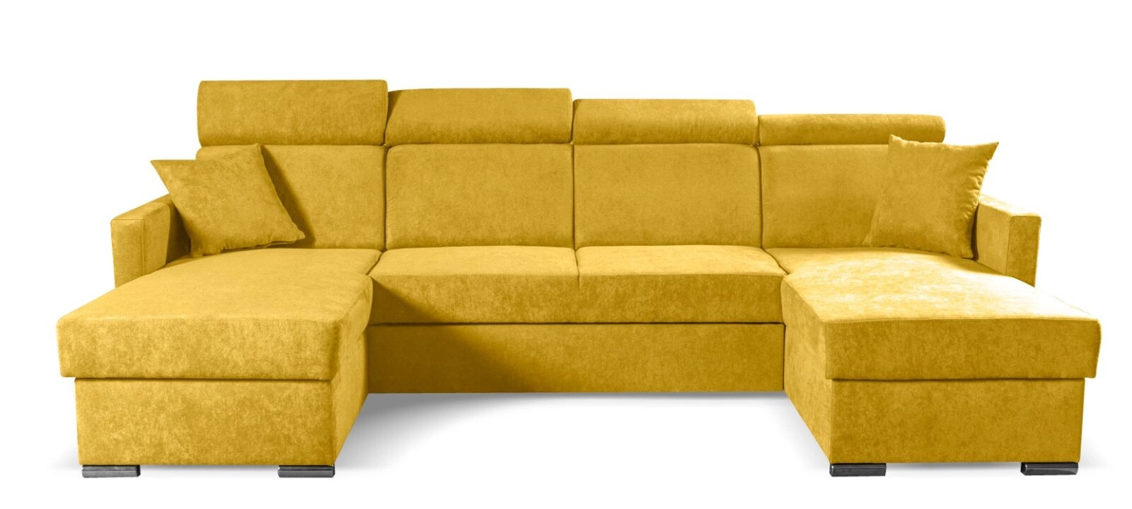 Twój salon stanie się miejscem pełnym komfortu i elegancji dzięki narożnikowi Mils U. Ten narożnik w kształcie U, wyróżniający się musztardowym kolorem i tkaniną Soro, jest nie tylko meblem, ale prawdziwym dodatkiem do wnętrza. Dzięki możliwości spania, Mils U stanie się idealnym miejscem na popołudniową drzemkę lub dodatkowe miejsce do spania dla gości.