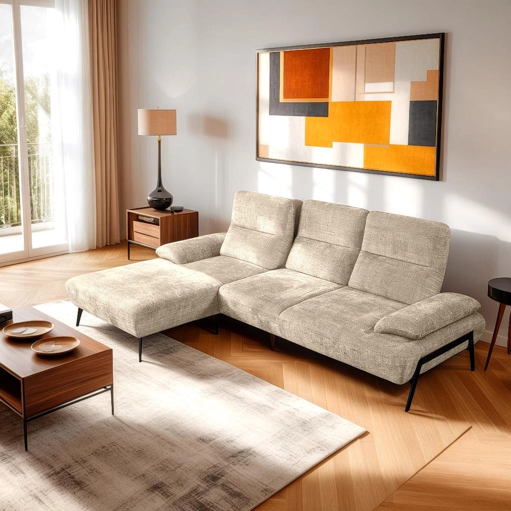 Narożnik Rasmus beżowy lewy marki Intesi to nowoczesny mebel wypoczynkowy do salonu o imponującej szerokości 290 cm i głębokości 185 cm, zaprojektowany z myślą o codziennym komforcie. Wyróżnia się elegancką, gładką tkaniną Perfect Harmony w ciepłym odcieniu beżu oraz możliwością regulacji oparcia, co pozwala precyzyjnie dopasować poziom wygody do indywidualnych potrzeb domowników. Stabilna, czarna podstawa z metalu podkreśla skandynawski styl narożnika i dodaje wnętrzu nowoczesnego charakteru.