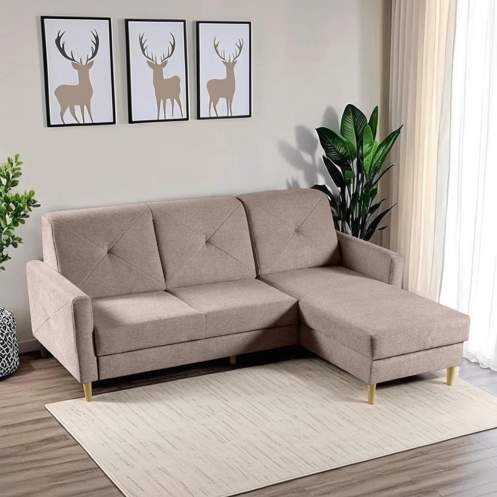 Narożnik Scandi z funkcją spania pudrowy róż Diosa 8 to nie tylko funkcjonalność, ale również estetyka. Pudrowy róż tkaniny, z której został wykonany, nadaje mu oryginalnego i świeżego wyglądu. Dodatkowo, nogi narożnika wykonane są z drewna bukowego, co gwarantuje jego stabilność i trwałość.