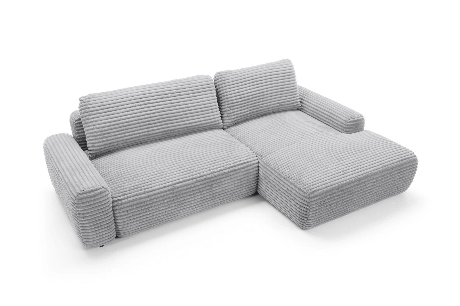 Narożnik sztruksowy z funkcją spania Domle prawy szary marki Intesi to nowoczesny, przestronny mebel wypoczynkowy, który łączy minimalistyczny design z maksymalną wygodą użytkowania. Wykonany z miękkiej tkaniny sztruksowej Ambience i wypełniony sprężystą pianką tapicerską, oferuje powierzchnię spania 210×135 cm oraz praktyczny pojemnik na pościel. To doskonały wybór do salonu, gdzie liczy się zarówno estetyka, jak i funkcjonalność.